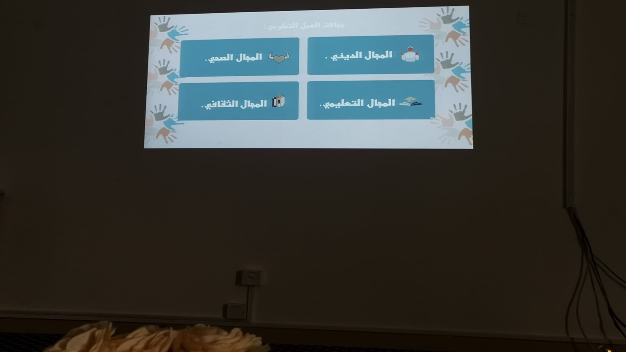 لأهمية العمل التطوعي ولما له من أثر كبير على الفرد والمجتمع، وما يمثله من فرصة للفرد تمكنه من الانخراط في شرائح المجتمع المختلفة. ولأثره في بناء شخصيته كما تساعده على صقل وتطوير مهاراته وتنميتها، وحرصًا منا على ذلك نظمت وحدة العمل التطوعي بعمادة السنة التحضيرية -قسم الطالبات محاضرة تعريفية عن العمل التطوعي بعنوان "العمل التطوعي سعادة وعطاء" وذلك يوم الإثنين الموافق 7-3-1443هـ، بحضور منسوبات وطالبات العمادة. ولقد استهلت الفعالية بمقدمة تعريفية عن العمل التطوعي كما تم استعراض أنواع الأعمال التطوعية وأثرها على الفرد والمجتمع، كما قامت طالبات الوحدة باستعراض مقطع فيديو عن بعض الأعمال التطوعية في المملكة العربية السعودية. ولقد لاقت الفعالية رضا واستحسان الحضور.