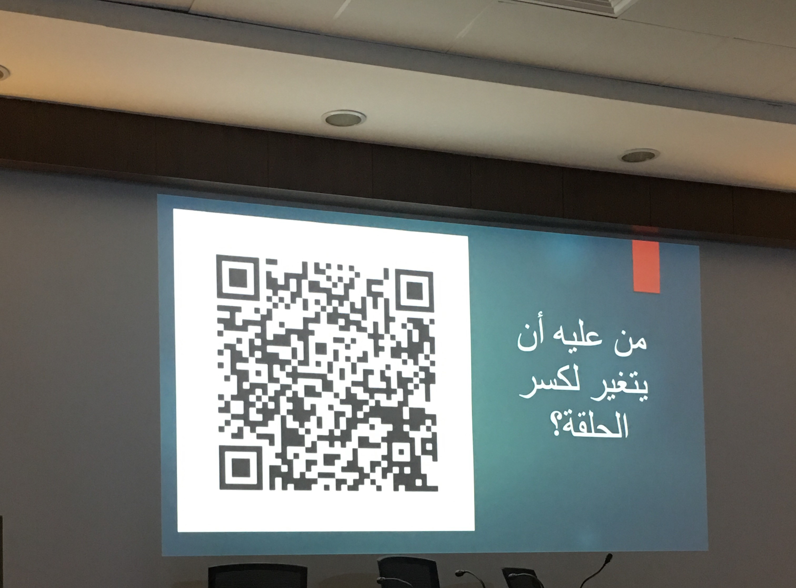 حيث طرح د. لؤي دور وأهمية الٌإداري في المؤسسة، بالإضافة إلى تجاربه الشخصية وما واجهه من اساليب الإدارة المختلفة خلال مسيرته المهنية حتى وصوله الى مركزه الحالي وناقش ظاهرة وخطورة النظام المقلوب في الإدارة، والجدير بالذكر ان الدكتور استخدم طريقة مبتكرة للتفاعل مع الحضور حيث وضع استبانات على شكل باركود عرضها على الشاشة بحيث تنقل الحضور لصفحة الأسئلة بعد تصوير الباركود بالجوال ومعرفة النتائج بشكل فوري ومناقشتها مما زاد تفاعل الحضور مع المحاور.