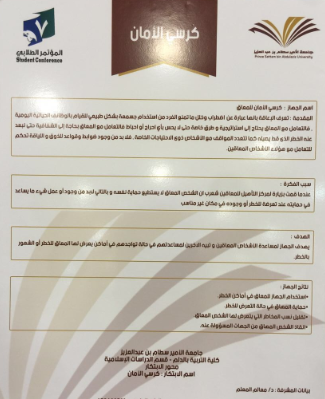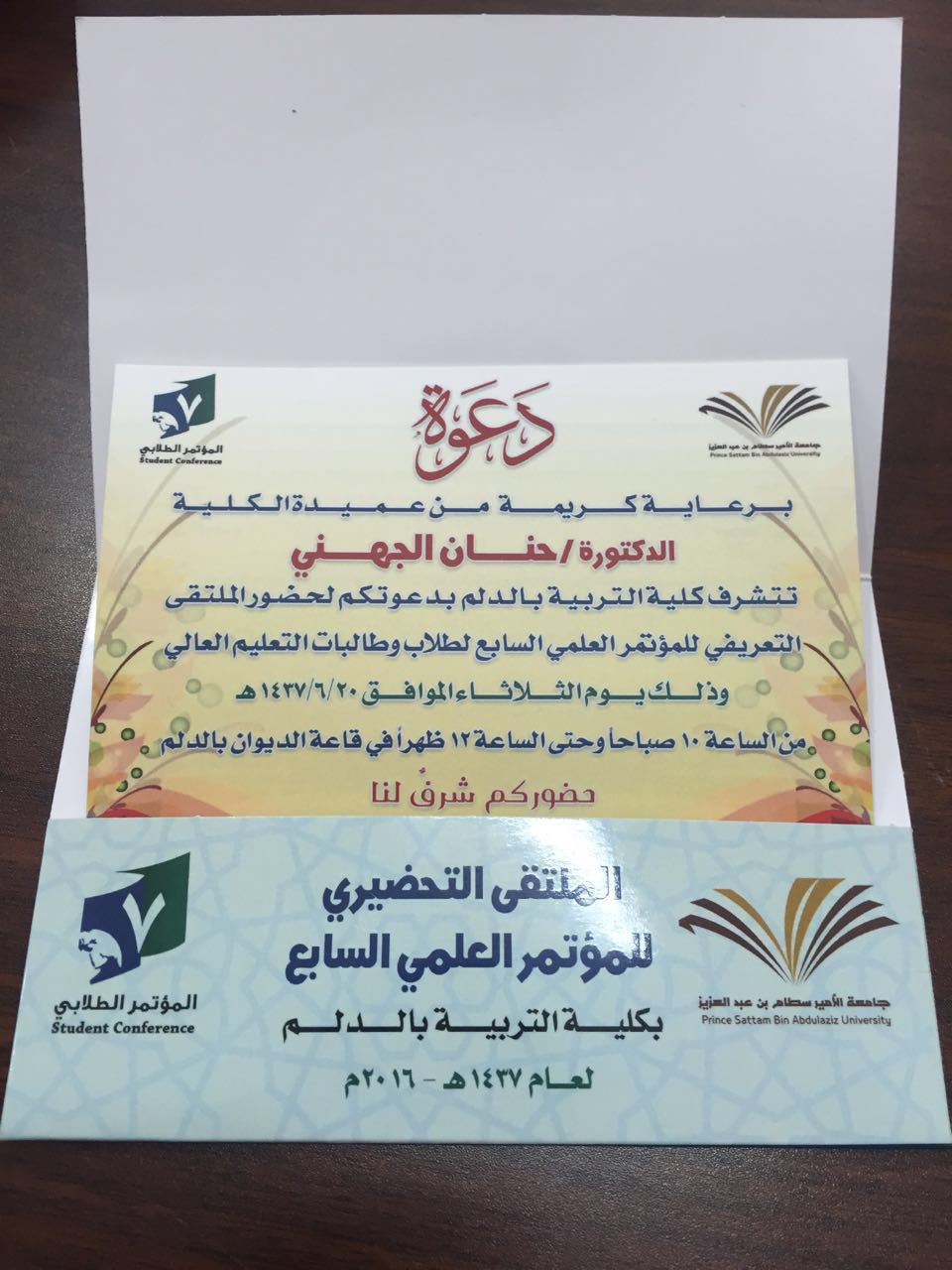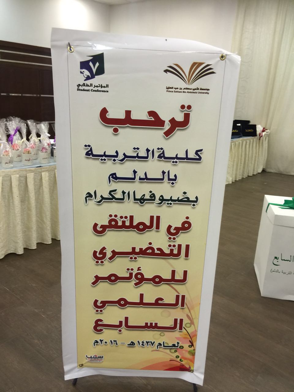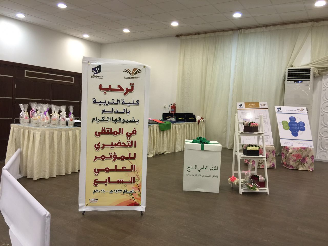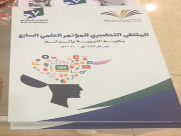 نظمت لجنة المؤتمر العلمي السابع بكلية التربية بالدلم حفل اختتام فعاليات الملتقي التحضيري للمؤتمر العلمي السابع لطلاب وطالبات التعليم العالي يوم الثلاثاء الموافق 20/ 6/1437هـ الساعة العاشرة صباحاً تحت إشراف منسقة المؤتمر أ.مها الطعيس ، وكان الملتقى بحضور ورعاية عميدة الكلية د.حنان مانع الجهني ود.دلال المطرفي وكيلة عمادة شؤون الطلاب وأعضاء من اللجنة الإشرافية للمؤتمر العلمي ، وجمع غفير من رئيسات الأقسام والوحدات واللجان وأعضاء هيئة التدريس والهيئة الادارية والطالبات .