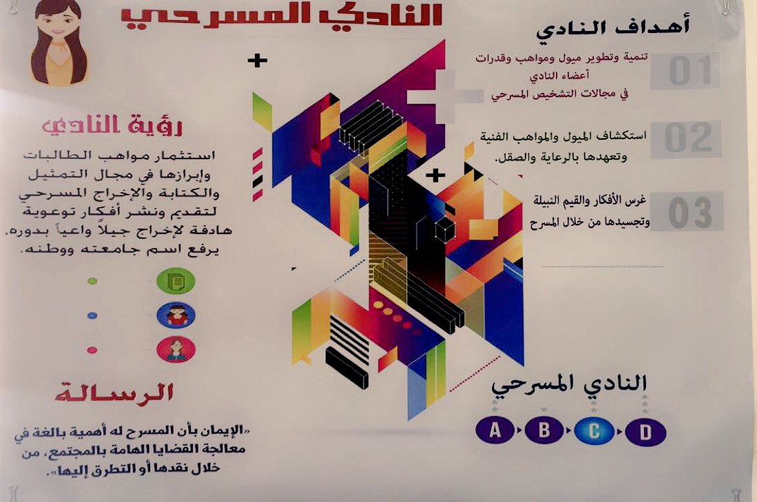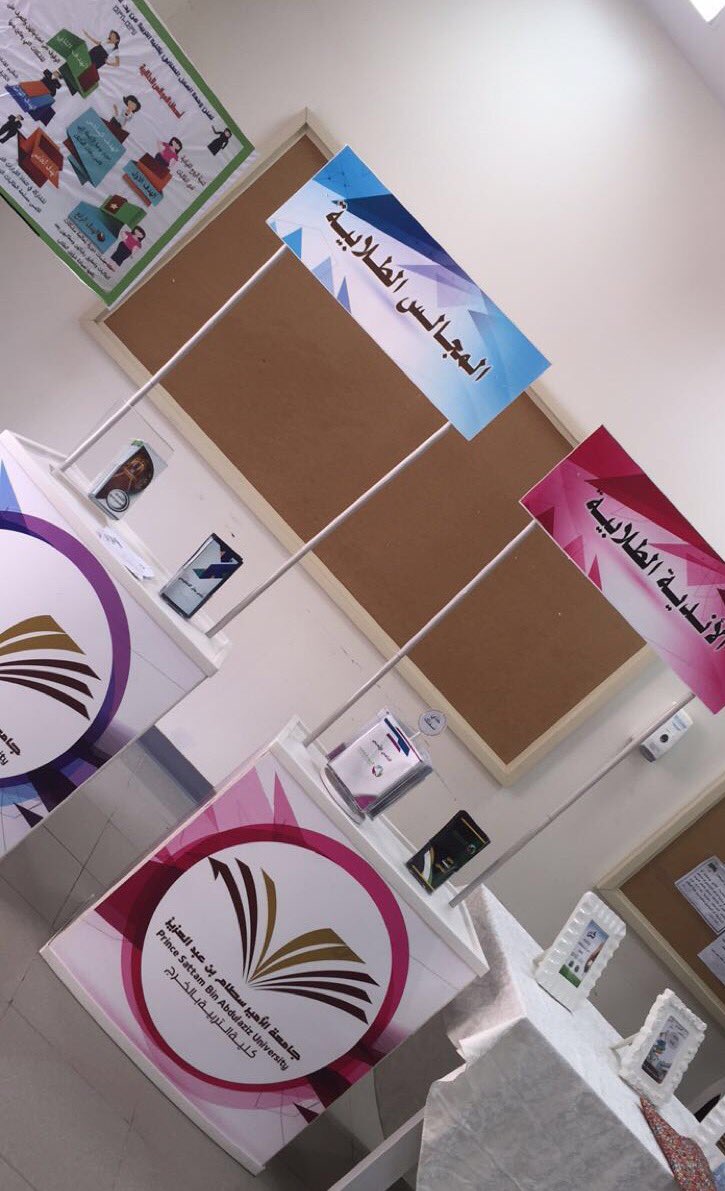 حيث اشتملت الأركان على كتيبات وبروشرات وملصقات وبنرات توضح مفهوم المجلس الطلابي وآلية الترشيح له وماهية الأندية الطلابية وعددها 4 أندية (نادي البحث العلمي, نادي الأدبي , نادي المسرحي, نادي بذل) والجدير بالذكر جهود العضوات بالمجالس والأندية بالحضور والتعريف بالأركان ومساعدة الطالبات في تعبئة استمارات العضوية والرد على الاستفسارات معلنات بذلك انطلاق حملتهم التعريفية على مدار الأسبوع