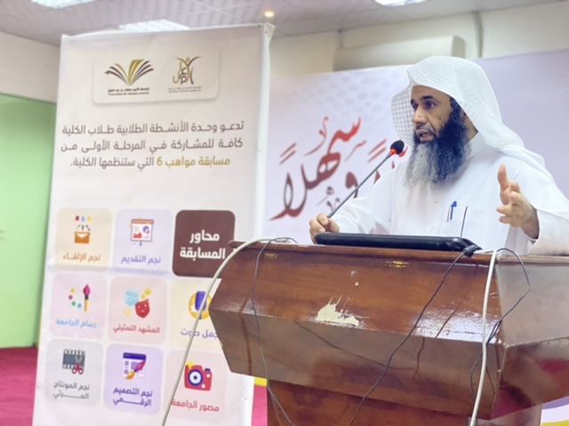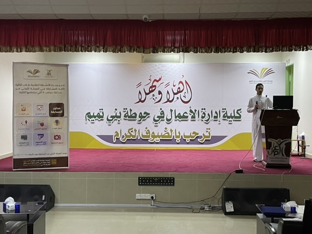 نظمت كلية إدارة الأعمال في حوطة بني تميم ممثلة بوحدة الأنشطة الطلابية المرحلة الأولى من مسابقة مواهب (٦) بين طلاب الكلية المشاركين، بحضور عميد الكلية د. إبراهيم بن محمد الداود، ووكلاء الكلية، وبعض أعضاء هيئة التدريس والطلاب، وذلك في يوم الأربعاء ١٤٤٣/٣/٢٨هـ.