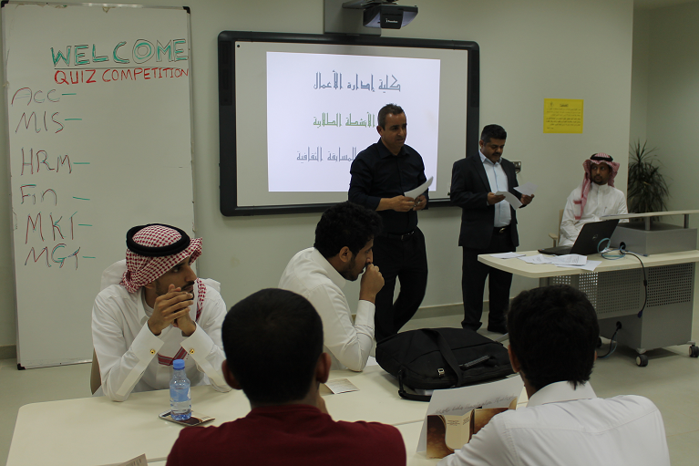 برعاية عميد كلية إدارة الأعمال الدكتور ناصر بن سعد القحطاني ، ووكيل الكلية للشؤون التعليمية والأكاديمية الدكتور علي الزهراني ومدير الإدارة الأستاذ محمد عبد المطلوب حمدان ، أقيمت المسابقة الثقافية بين الأقسام الأكاديمية بالكلية والتي نظمتها لجنة الأنشطة الطلابية ، والتي تعنى بتنمية جوانب المشاركة والتشجيع على الاطلاع وتعزيز تفاعل الطلاب مع الأنشطة اللاصفية وصقل المواهب والهوايات للطلاب . انتهت المسابقة بفوز فريق قسم المالية بالمركز الأول وفوز فريق قسم الإدارة بالمركز الثاني . حيث تم بنهاية المسابقة تكريم الفرق الفائزة بجوائز نقدية .