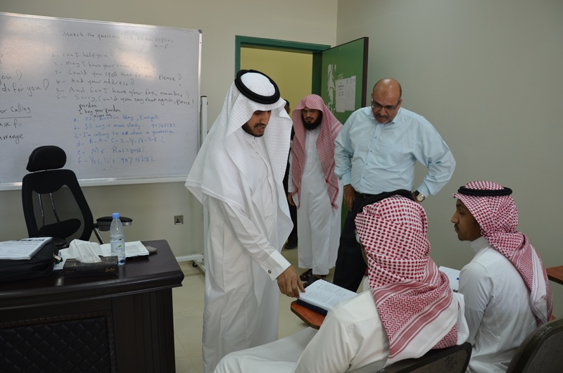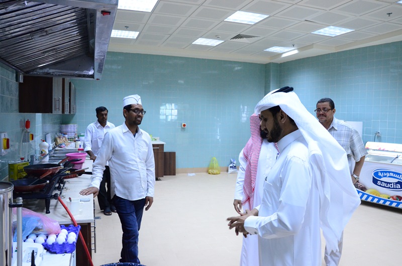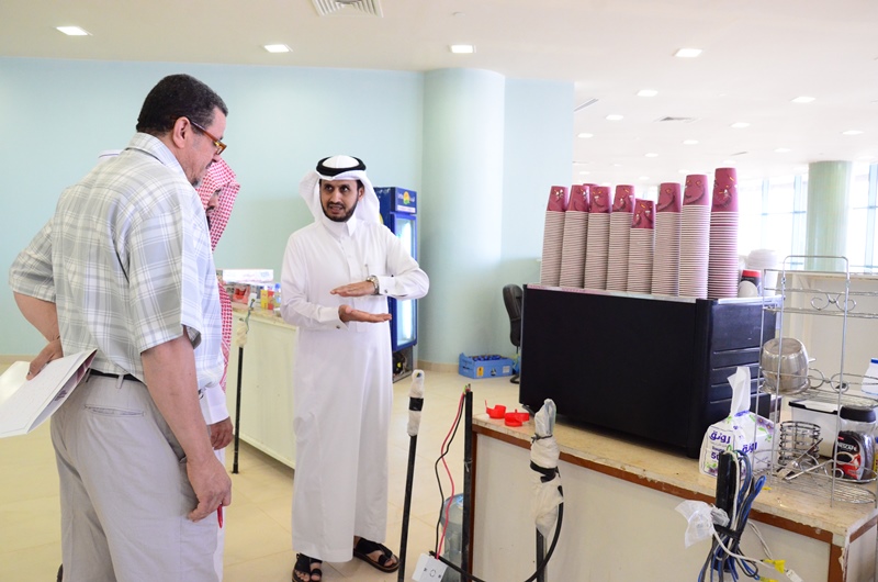 واثناء الزيارة شدد سعادته على الالتزام بالجداول الدراسية الموجودة على البوابة الإلكترونية ووضعها على القاعات الدراسية ومكاتب أعضاء هيئة التدريس، كما طالب أعضاء هيئة التدريس بالالتزام التام بالمناهج والكتب المقررة في توصيف المقررات ، كما حث سعادته أعضاء هيئة التدريس بالظهور بالمظهر اللائق أمام الطلاب حفاظاً على هيبة عضو هيئة التدريس ، ثم اختتم جولته التفقدية بزيارة كافتريا الكلية وأبدى بعض الملاحظات على طريقة عرض الأصناف الغذائية، كما وجه سعادته بالالتزام بالاشتراطات الصحية في طريقة العرض للأغذية والمشروبات الموجودة لدى الكافتريا.