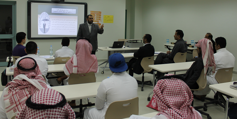 ضمن فعاليات الاستعدادات للمؤتمر العلمي السابع لطلاب وطالبات التعليم العالي بالمملكة، وبرعاية عميد كلية إدارة الأعمال الدكتور ناصر القحطاني ، أقامت الكلية ورشة عمل حول محور ريادة الأعمال والذي يعد من أهم محاور المؤتمر العلمي تحت عنوان : المشروعات الصغيرة وإنتاج الأعمال ، حيث أدار الورشة الدكتور فخر الدين موسى محمد عثمان ، منسق الكلية للمؤتمر العلمي السابع ، و تحدث فيها الدكتور طارق توفيق الخطيب ، الأستاذ المساعد بقسم التسويق بالكلية متناولا مفهوم المشروعات الصغيرة والمعايير المستخدمة في تصنيفها مع بيان أهميتها في الاقتصاد الوطني السعودي خاصة في الوقت الراهن مرورا بالمعوقات والمشكلات التي قد تواجه الشباب في إنشاء المشاريع الصغيرة وطرق تجاوزها ، مبينا الفرص المتاحة للاستثمار.