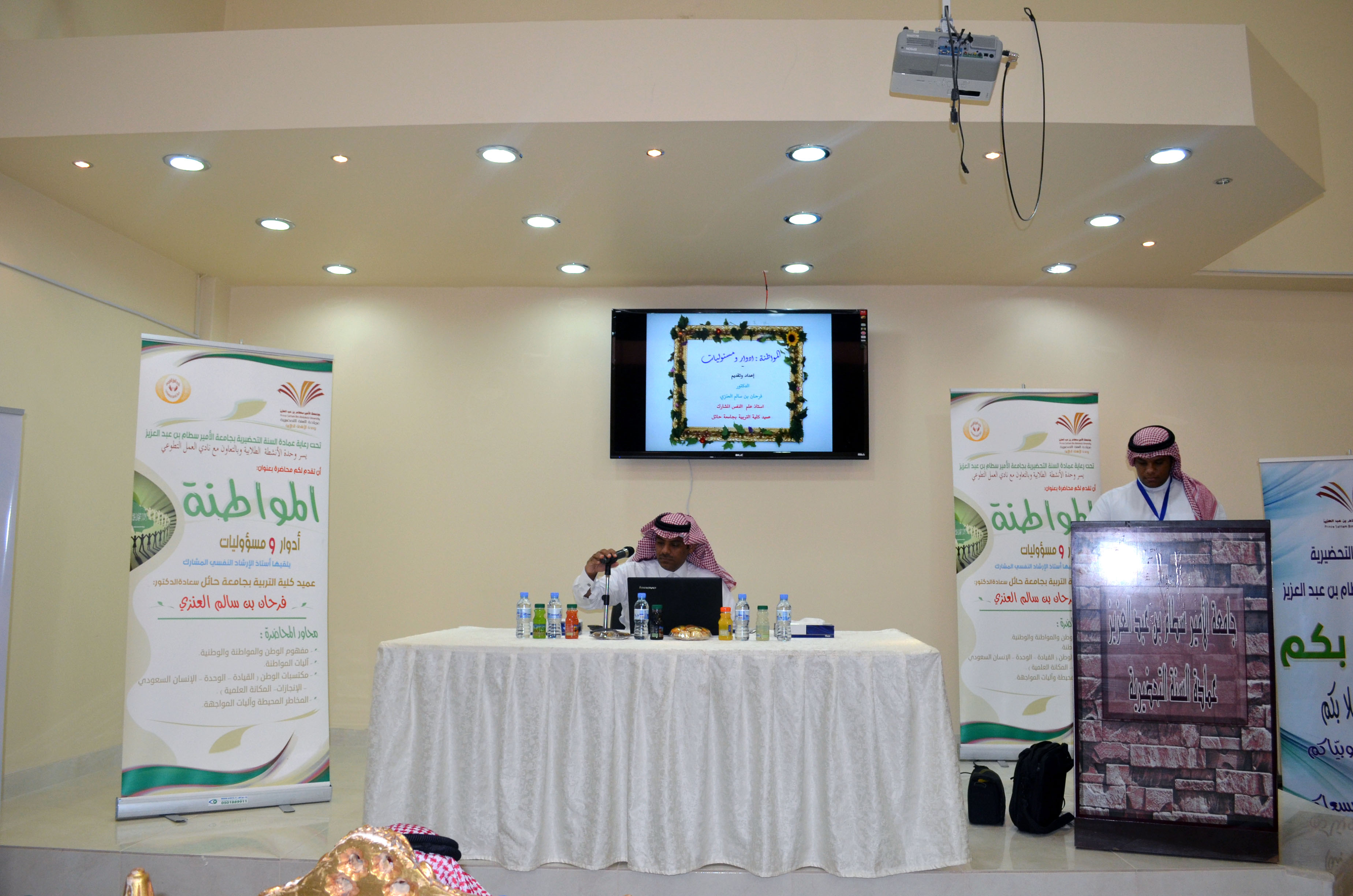 نظمت عمادة السنة التحضيرية ممثلة في وحدة الأنشطة الطلابية، محاضرة بعنوان ( المواطنة.. أدوار ومسؤوليات) لطلاب ومنسوبي العمادة، وذلك يوم الأحد19-1-1437هـ في مسرح عمادة السنة التحضيرية، ألقاها أستاذ الإرشاد النفسي المشارك عميد كلية التربية بجامعة حائل الدكتور فرحان بن سالم العنزي.