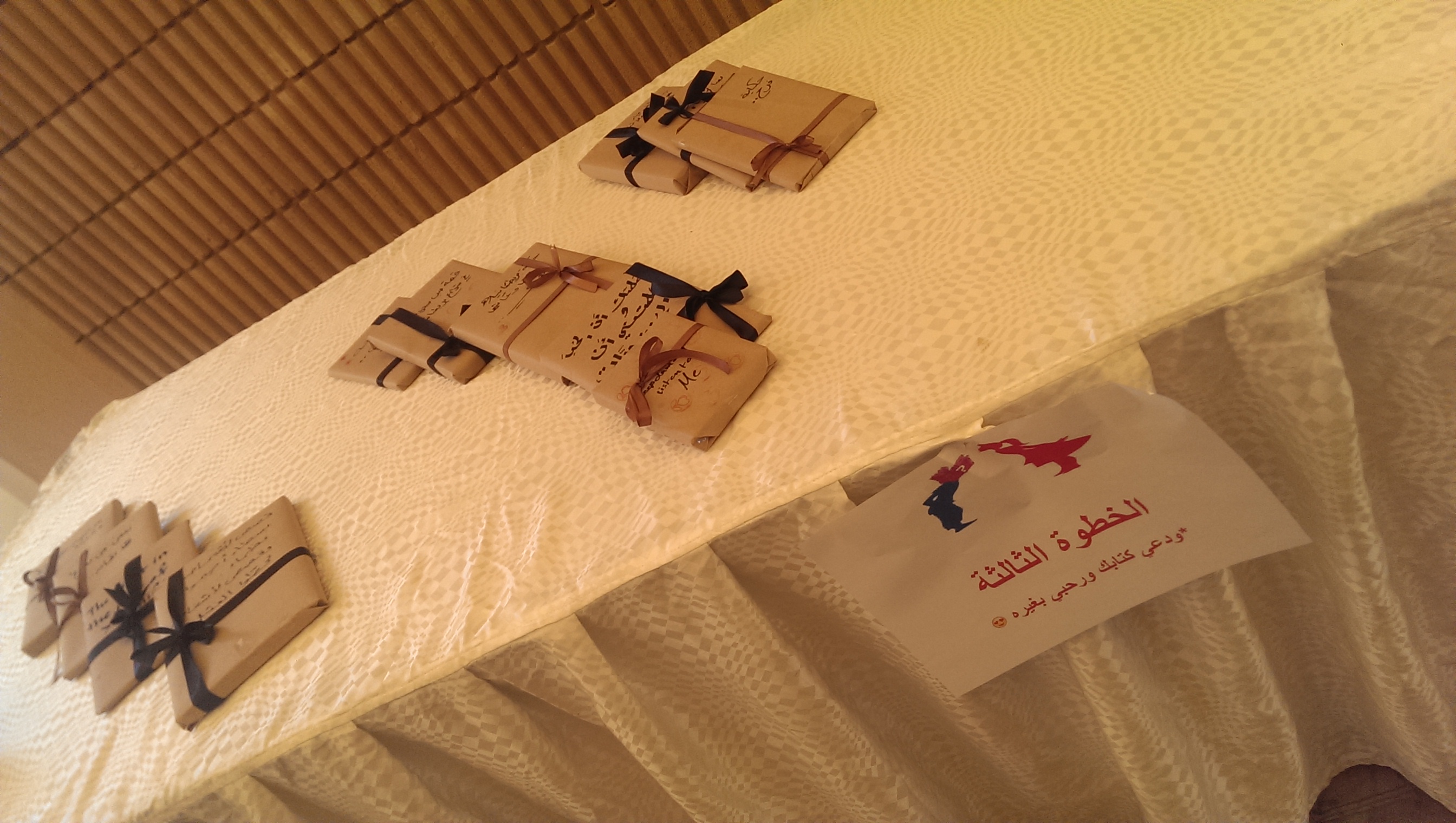 تزامناً مع الحدث الثقافي الذي سيعقد قريباً بمدينة الرياض (معرض الرياض الدولي للكتاب)، ولنشر الوعي القرائي بين طالبات كلية العلوم الطبية التطبيقية نظم نادي القراءة معرض بعنوان (العمى مع الكتاب ) ولمدة اسبوع اعتباراُ من يوم الاثنين الموافق11-5-1436 هـ، حيث يهدف المعرض الى التوعية بأهمية اختيار الكتاب بناء على محتواه وليس غلافه، ونظمت عضوات النادي المعرض على هيئة 3 خطوات: