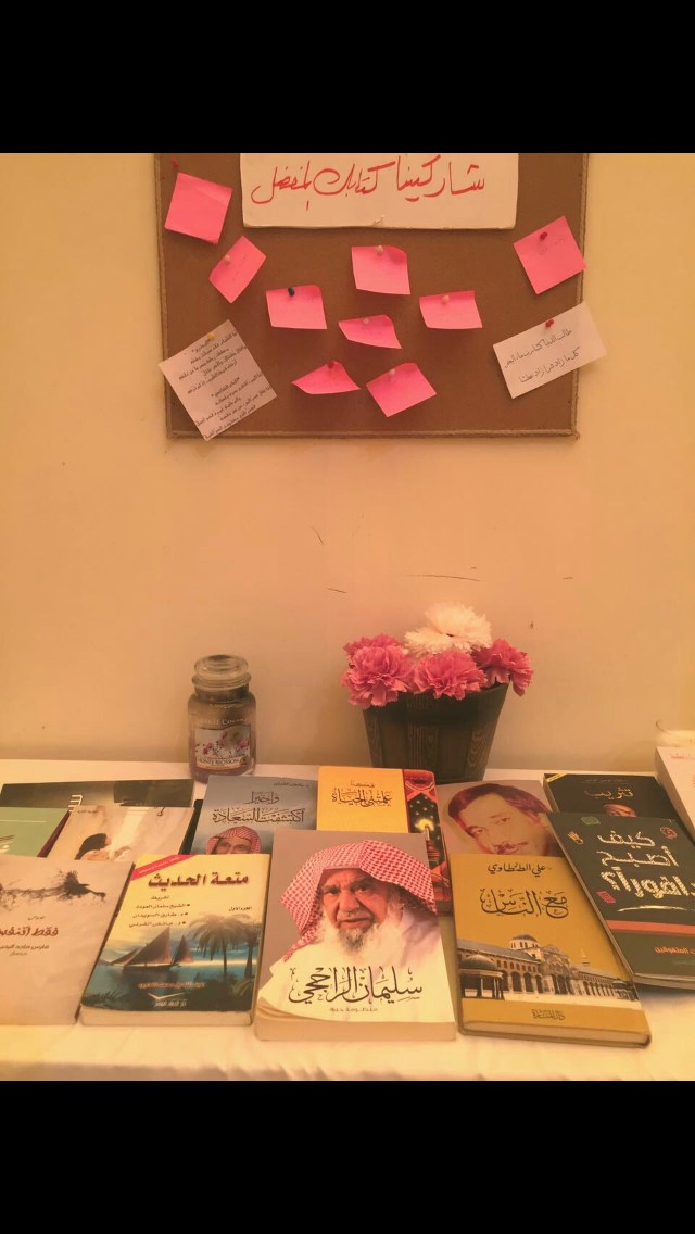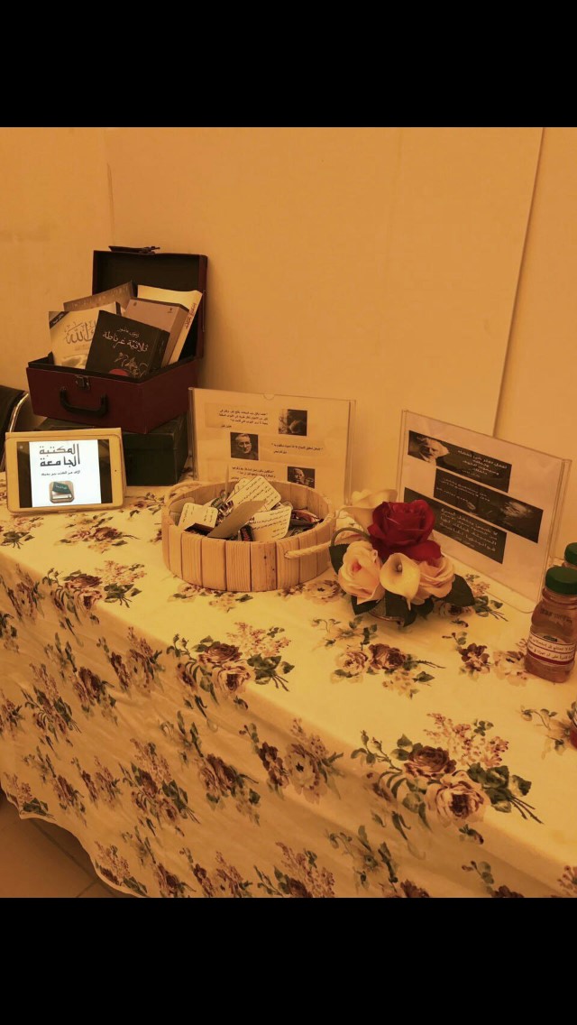 أقام النادي الأدبي بكلية الصيدلة ركـن تفاعلي للطالبات في ساحة الكلية عن أثر وأهمية القراءة على الأفراد حيث تحدثن الطالبات عن أبرز هذه الأثار وتبادل أسماء الكتب و المؤلفين و طرحن توصيات رائعة في مختلف الآداب ، أيضا تم عرض بعض التطبيقات التي تعين الطالبة على القراءة مثل : تطبيق المكتبة الجامعـة الذي يعنى بتوفير نسخ الكترونية للكتب موفراً بذلك مالا و وقتاً، بالإضافة إلى تطبيقات توفر لهن النسخ الورقية من الكتب في أي مكان وزمان مع مقابل مادي بسيط ، هذا وقد إستعرضن في الركن جزء من مقتنياتهن الثمينة من الكتب القيمة ، وقد لاقى الركن إعجاب الطالبات.