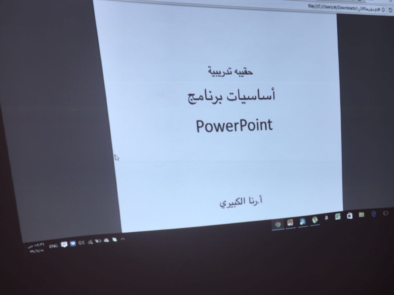 وفيها أخذت المتدربات المشاركات في التعرف إلى مقدمة من عن برنامج العروض التقديمية (البوربوينت)، ومكونات نافذة العرض وتحديد نصوص الشريحة والتعديل عليها وتنسيقها، وعلى الشريط الرئيس، كما تعرفن إلى تنسيق النصوص في العناصر وإضافة الشرائح، والمهارات الفنية الأخرى المتعلقة بالبرنامج، الذي لم يعد عنه غنى لمستخدمي التقنية الحديثة.