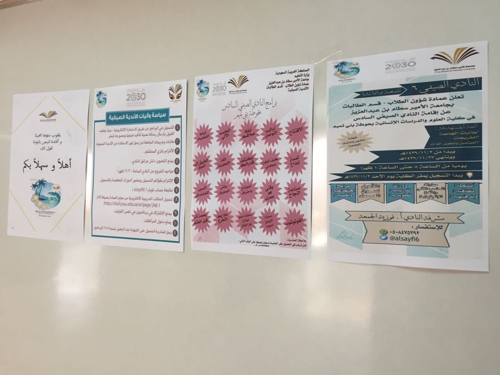 وقد صرّحت الدكتورة دلال المطرفي، وكيلة عمادة شؤون الطلاب، أنّ قسم الطالبات بعمادة شؤون الطلاب، وبدعم وتوجيه من سعادة عميد شؤون الطلاب الدكتور ثلاب الشكرة يقوم على الإشراف والمتابعة والاهتمام بمتابعة برامج وفعاليات النادي الصيفي السادس، ويسعى دائبًا إلى التخطيط والدعاية والتنفيذ وتنظيم البرامج والفعاليات والدورات التدريبية في الأندية الصيفية، سعيًا إلى تحقيق رؤية المملكة 2030، التي تتضمّن ترسيخ القيم الإيجابية في شخصية أبناء الوطن وبناته، وإكسابهم المعارف والسلوكيات الحميدة، وترسيخ الانتماء للوطن والمجتمع، وبناء شخصية سوية وسطية متوازنة منتجة. وهو ما تحقق واقعًا ملموسًا، من خلال البرامج التي اختتم بها النادي السادس أسبوعه الأول.