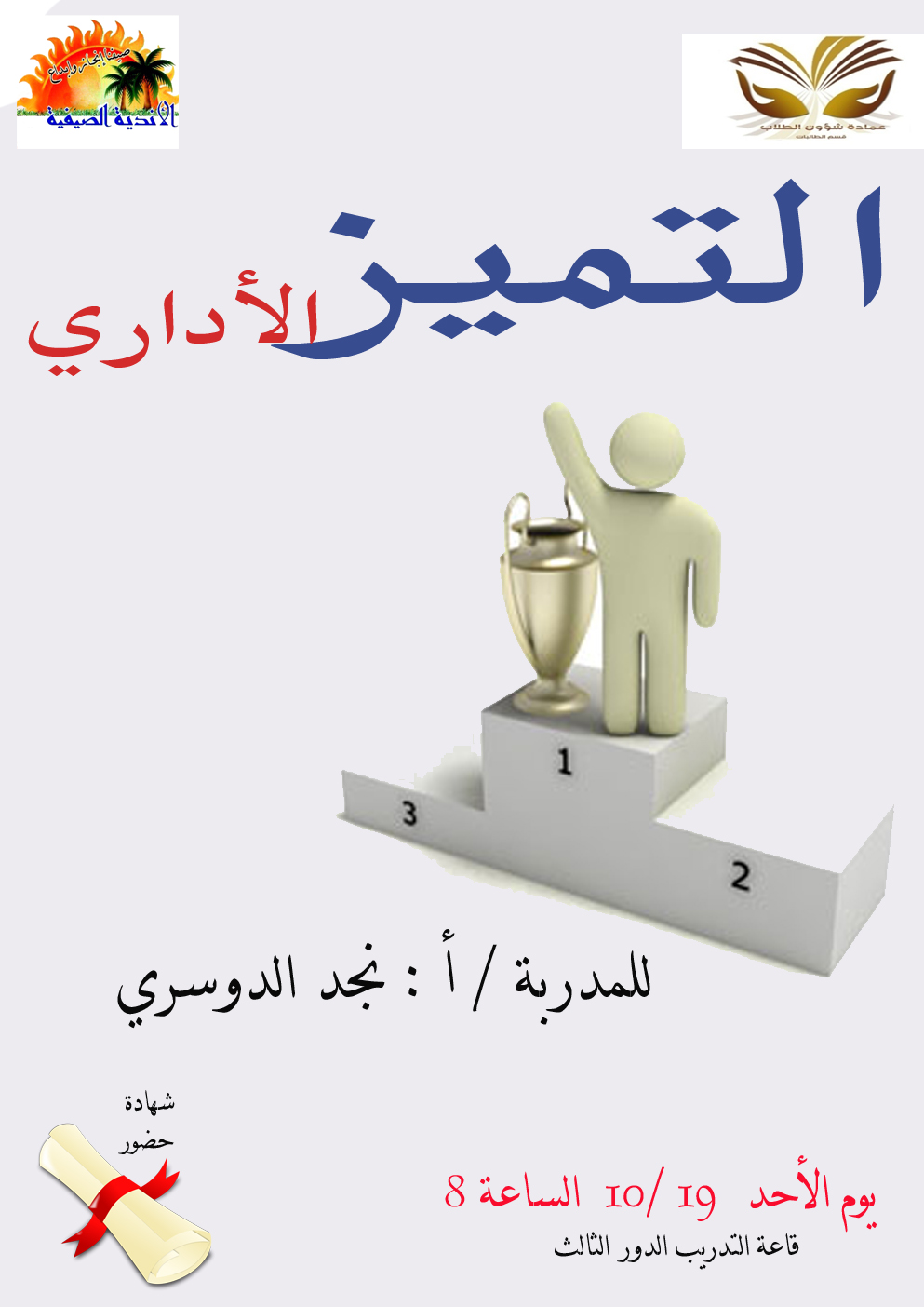 وجدير بالذكر أن الأسبوع الأول للنادي قد استغرق 20 ساعة تدريبية، وحضره عدد كبير من المشارِكات. وأنجزت فعالياته بدعم ومؤازرة ومتابعة من قسم الطالبات بعمادة شؤون الطلاب بالجامعة.