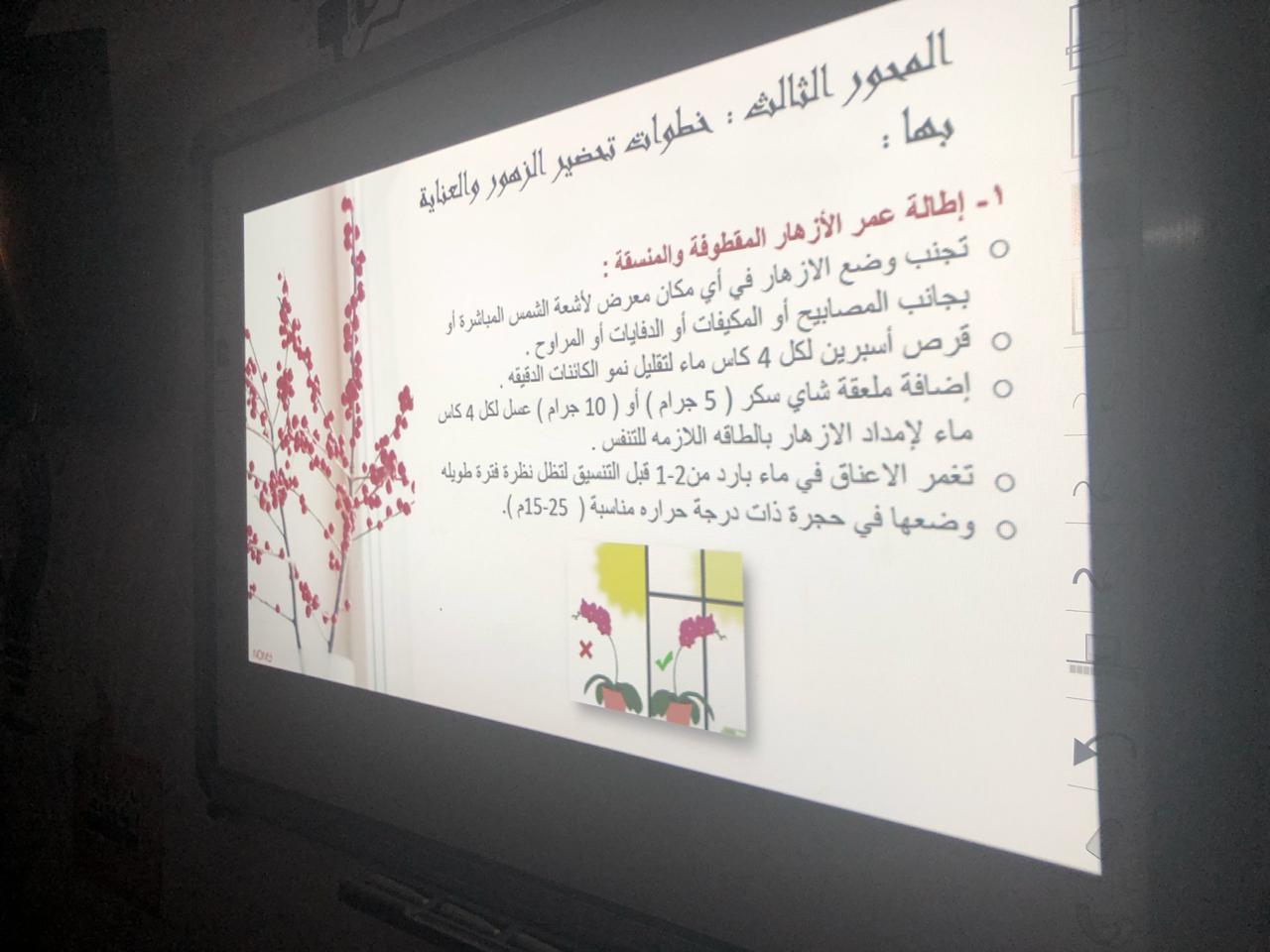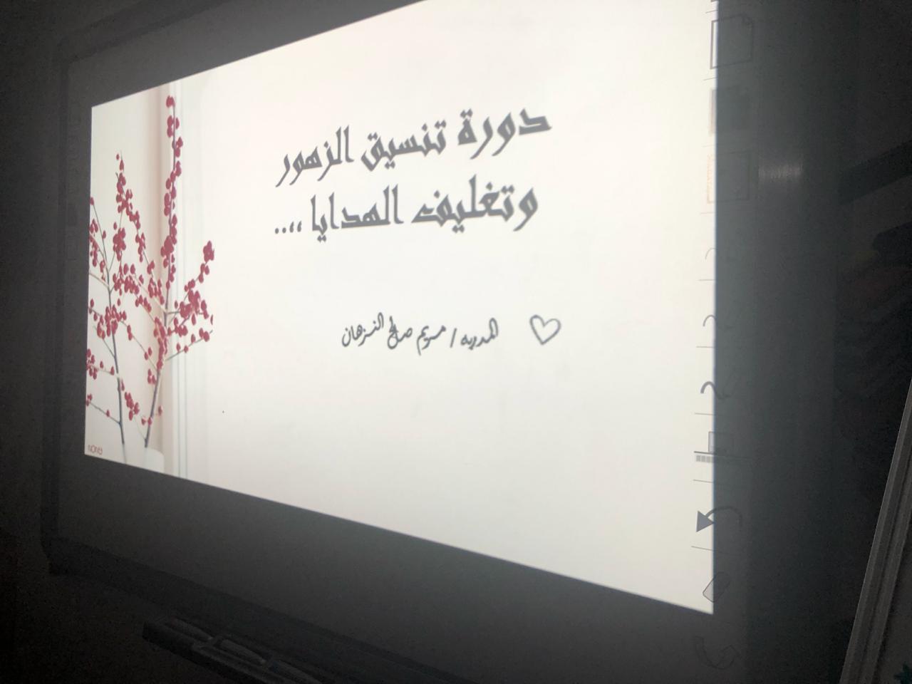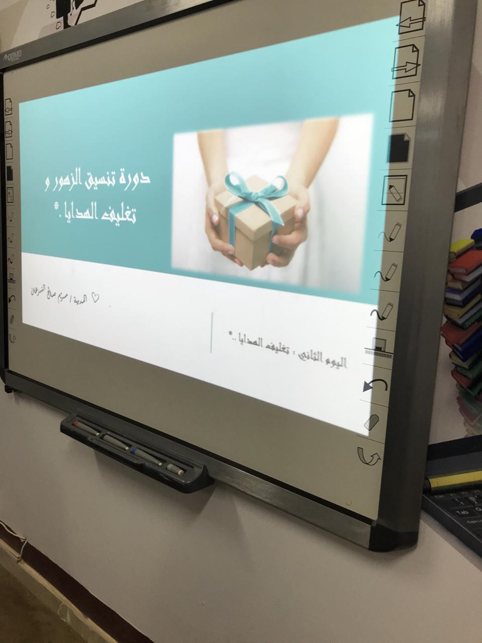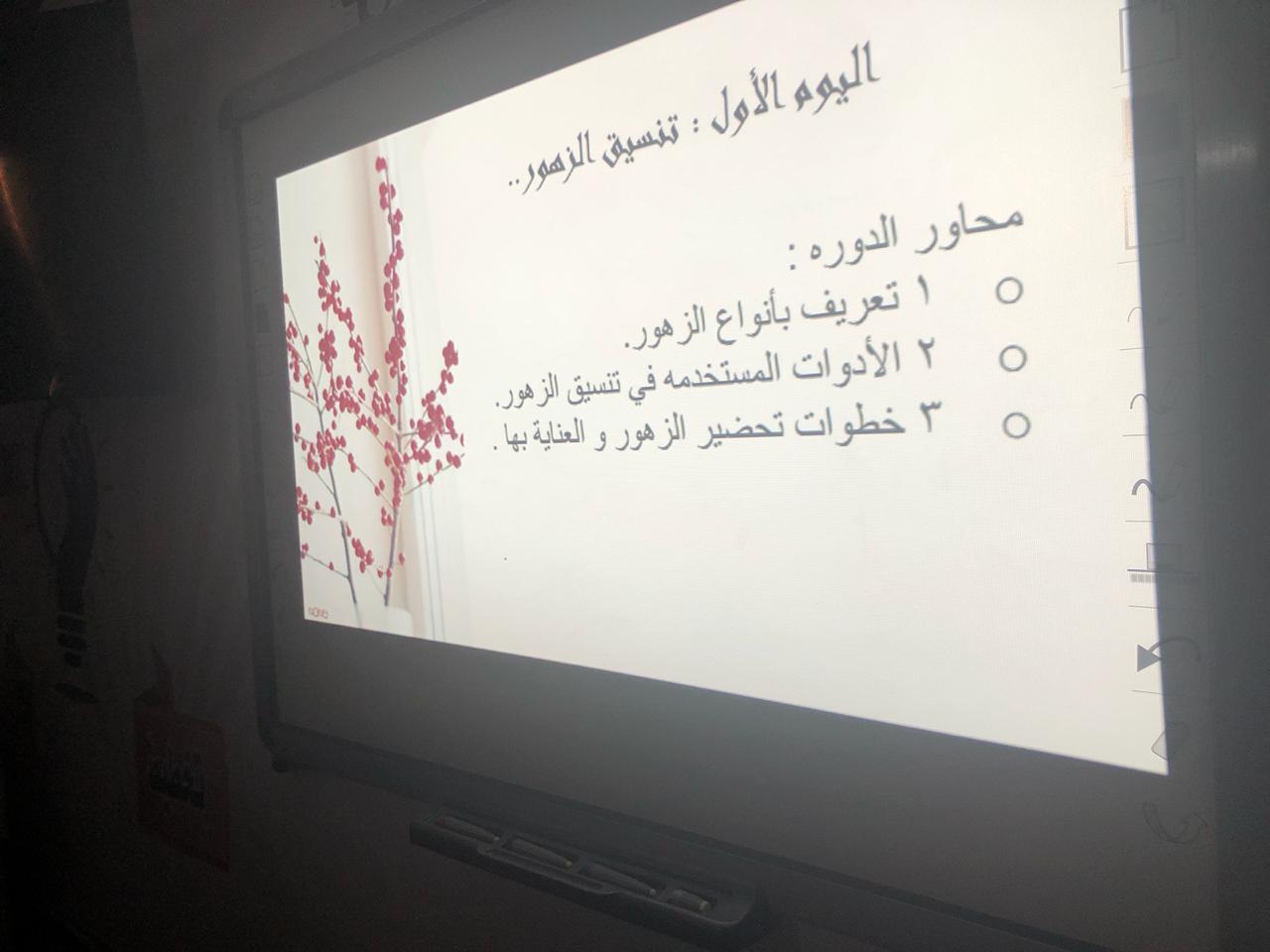 وعلى مدى يومي الثلاثاء والأربعاء قدمت المدربة: أ. مريم النزهان دورة تدريبية في (تغليف الهدايا وتنسيق الزهور)، استهدفت تعريف المتدربات بأنواع الزهور وألوانها، والأدوات المستخدمة في تنسيقها، وخطوات تحضيرها والعناية بها. ثم تدريبهن من خلال تطبيق عمليّ فرديّ على فنّ تغليف الهدايا بشكل أنيق وغير مكلف