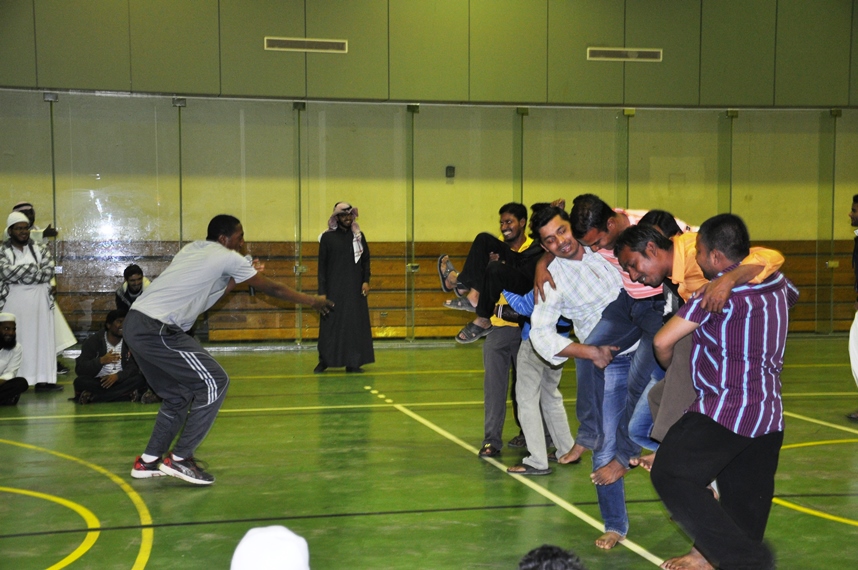 بعد ذلك قدم مجموعة من طلاب الجامعة برنامجاً ترفيهياً تخلله العديد من الألعاب الحركية والمسابقات الترفيهية لاقت تفاعلاً كبيراً من العمالة واختتم البرنامج بتوزيع ما يقارب 170 كسوة شتوية للعمال ومن ثم وجبة عشاء للعمالة والمنظمين.