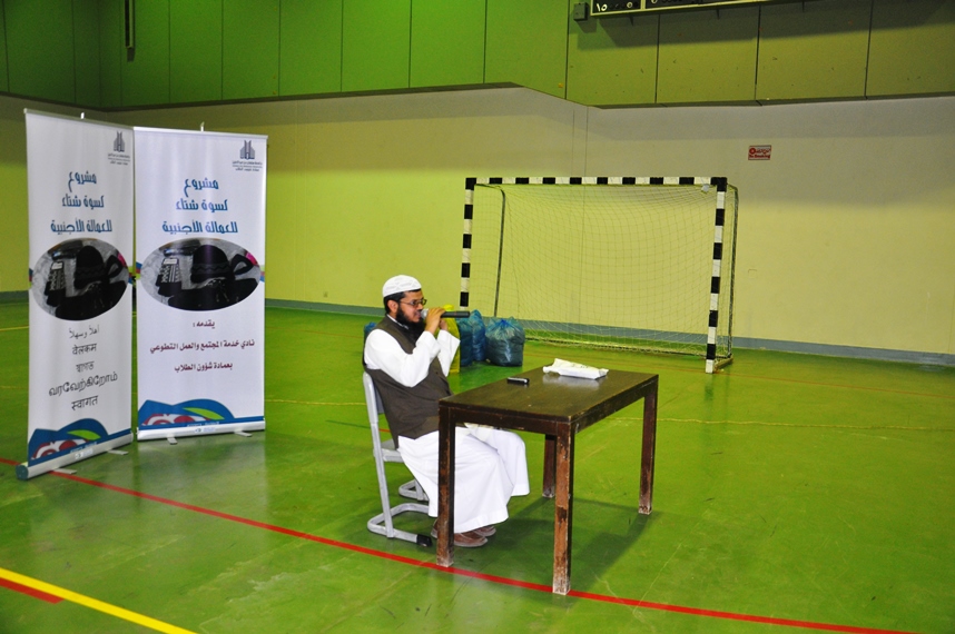 أقام نادي خدمة المجتمع والعمل التطوعي بعمادة شؤون الطلاب في جامعة سلمان بن عبدالعزيز بالتعاون مع نادي الشعلة الرياضي برنامج ( كسوة شتاء ) لعمالة الجامعة والنادي وذلك يوم الثلاثاء الموافق 10/2/1436هـ في الصالة الرياضية المغلقة بنادي الشعلة ، وقد أستضيف في هذا البرنامج داعية من المكتب التعاوني للدعوة والإرشاد وتوعية الجاليات بالخرج تحدث عن أهمية وجود العمالة في بلادنا وأنهم جزء مهم في حياتنا وأنه لا فرق بين عربي ولا أعجمي إلا بالتقوى.