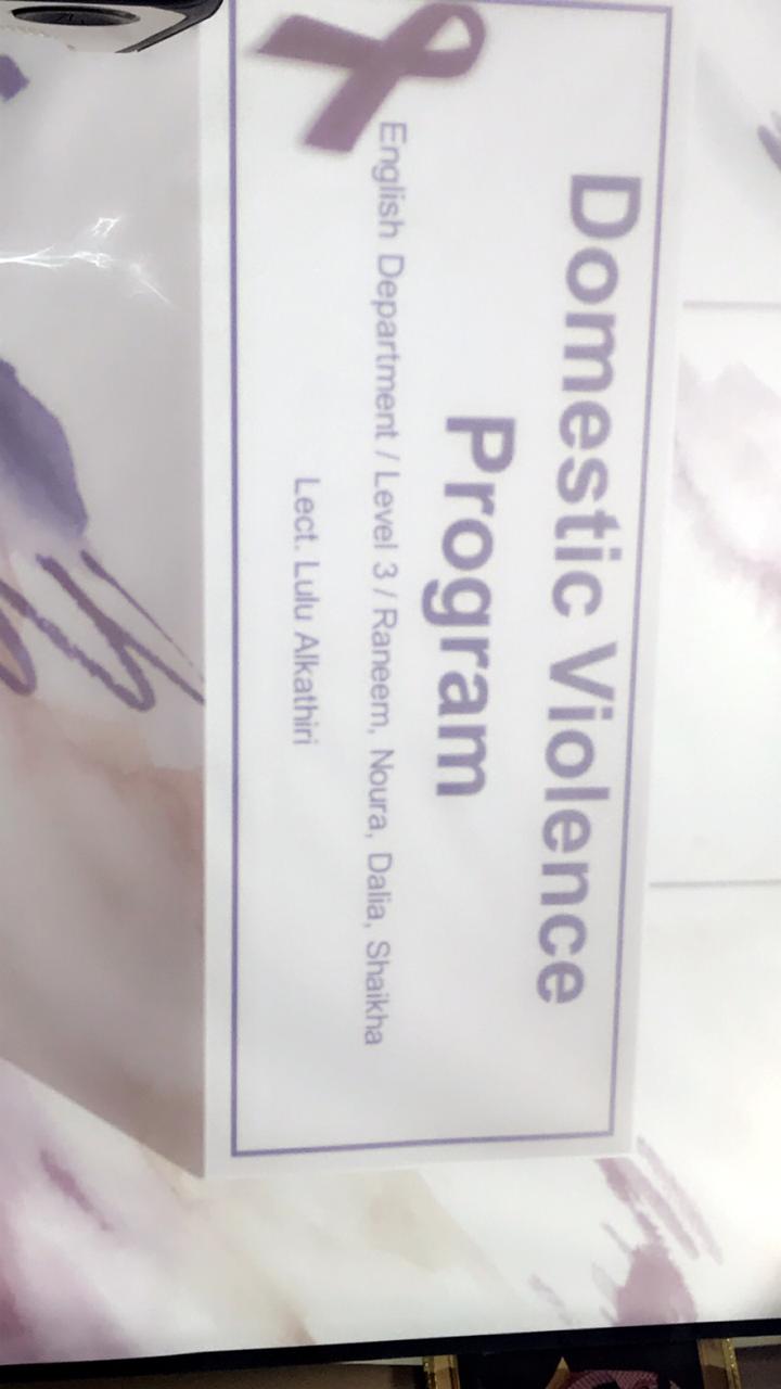 كرّست المملكة العربية السعودية جهودها في التصدي لظاهرة العنف الأسري عبر تقديم مختلف البرامج للتوعية الأسرية والدعم المعنوي؛ تفعيلاً لهذه البرامج ولرفع مستوى الوعي المجتمعي وبالتزامن مع الاحتفال العالمي بيوم الطفل أقام قسم اللغة الإنجليزية بكلية العلوم والدراسات الإنسانية بحوطة بني تميم يوم الأثنين الموافق ٤-٣-١٤٤٠هـ فعالية بعنوان (Domestic Violence) -العنف الأسري.