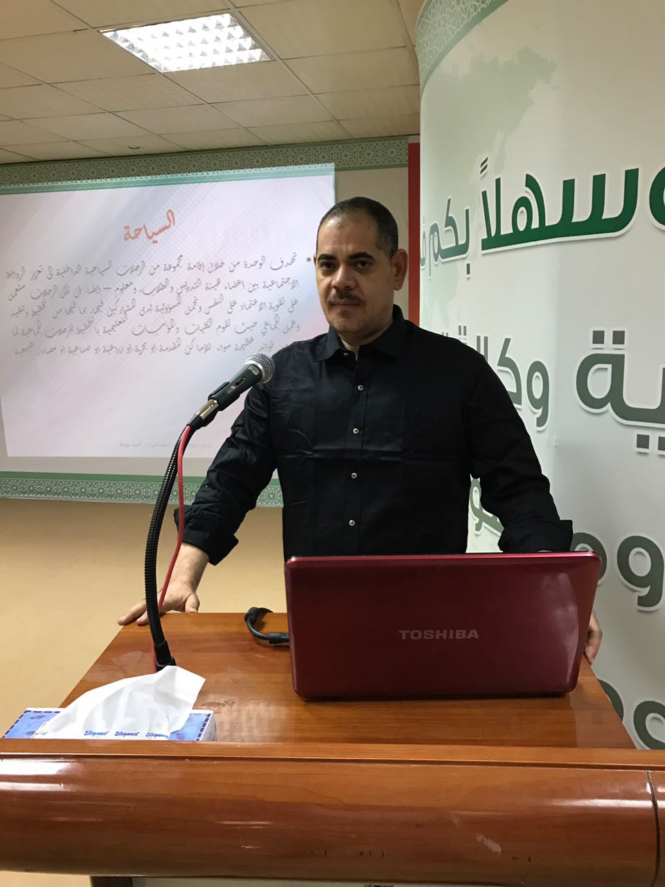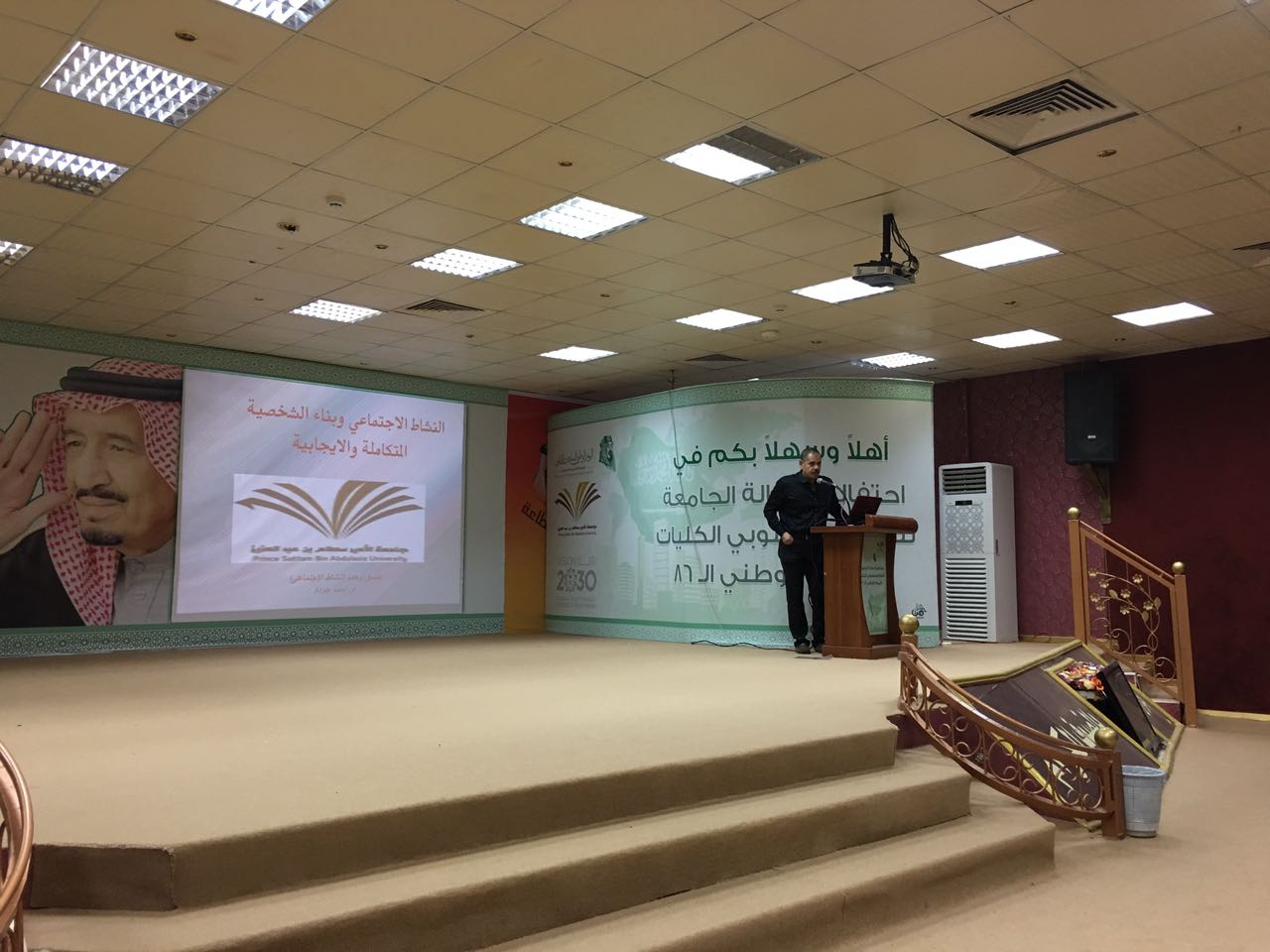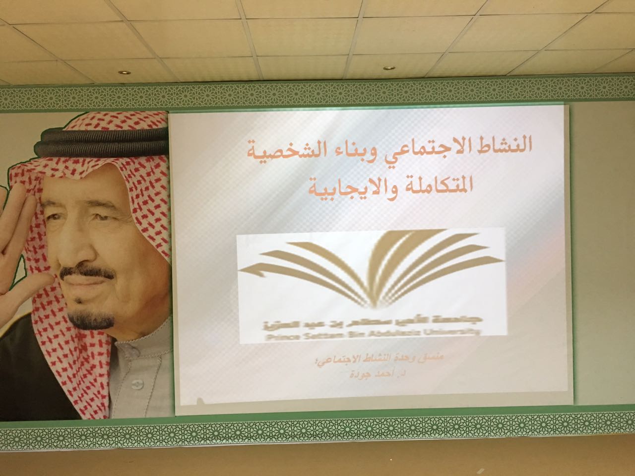 بتوجيهات عميد كلية الآداب والعلوم بوادي الدواسر د. سفر بن بخيت المدرع ألقى د. أحمد جودة عضو هيئة التدريس منسق شعبة النشاط الاجتماعي بالكلية ندوة في مسرح كلية الاداب والعلوم بعنوان النشاط الاجتماعي وبناء الشخصية المتكاملة والإيجابية تناول فيها جوانب بناء الشخصية الفاعلة، بحضور أعضاء هيئة التدريس وعدد من طلاب الكلية .