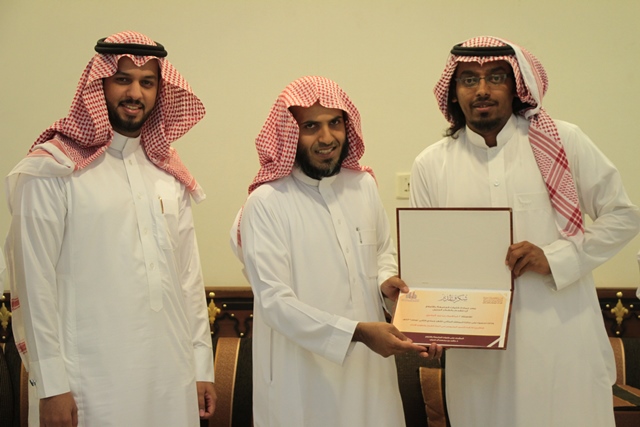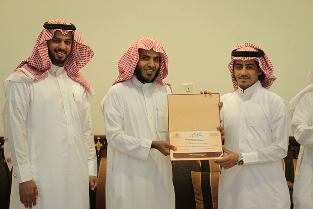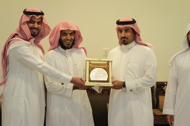 ثم تلاها تكريم القسم الحاصل على درع التميز والذي فازت به إدارة المتابعة وتقدمهم رئيس القسم الأستاذ / نابت بن ظافي آل سيف، بعد ذلك سلمت شهادات الشكر والتقدير للموظفين المثاليين وهم :-