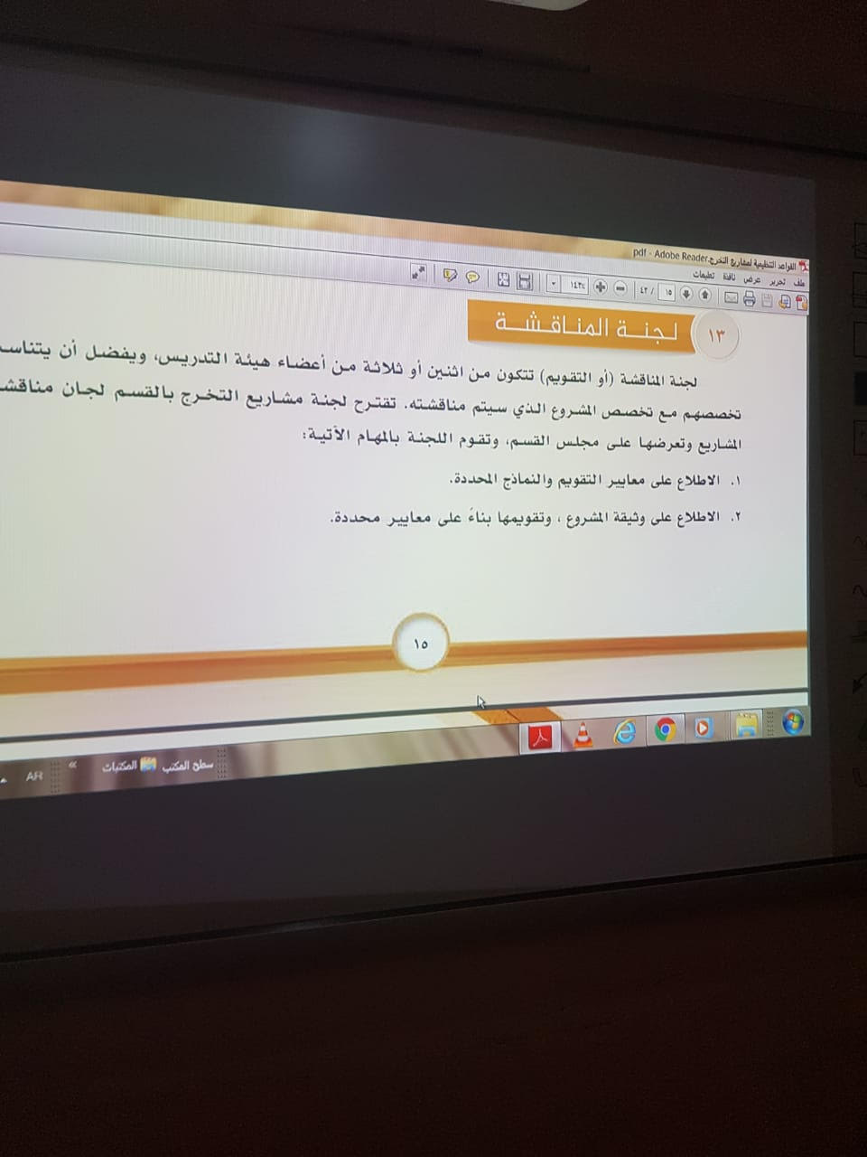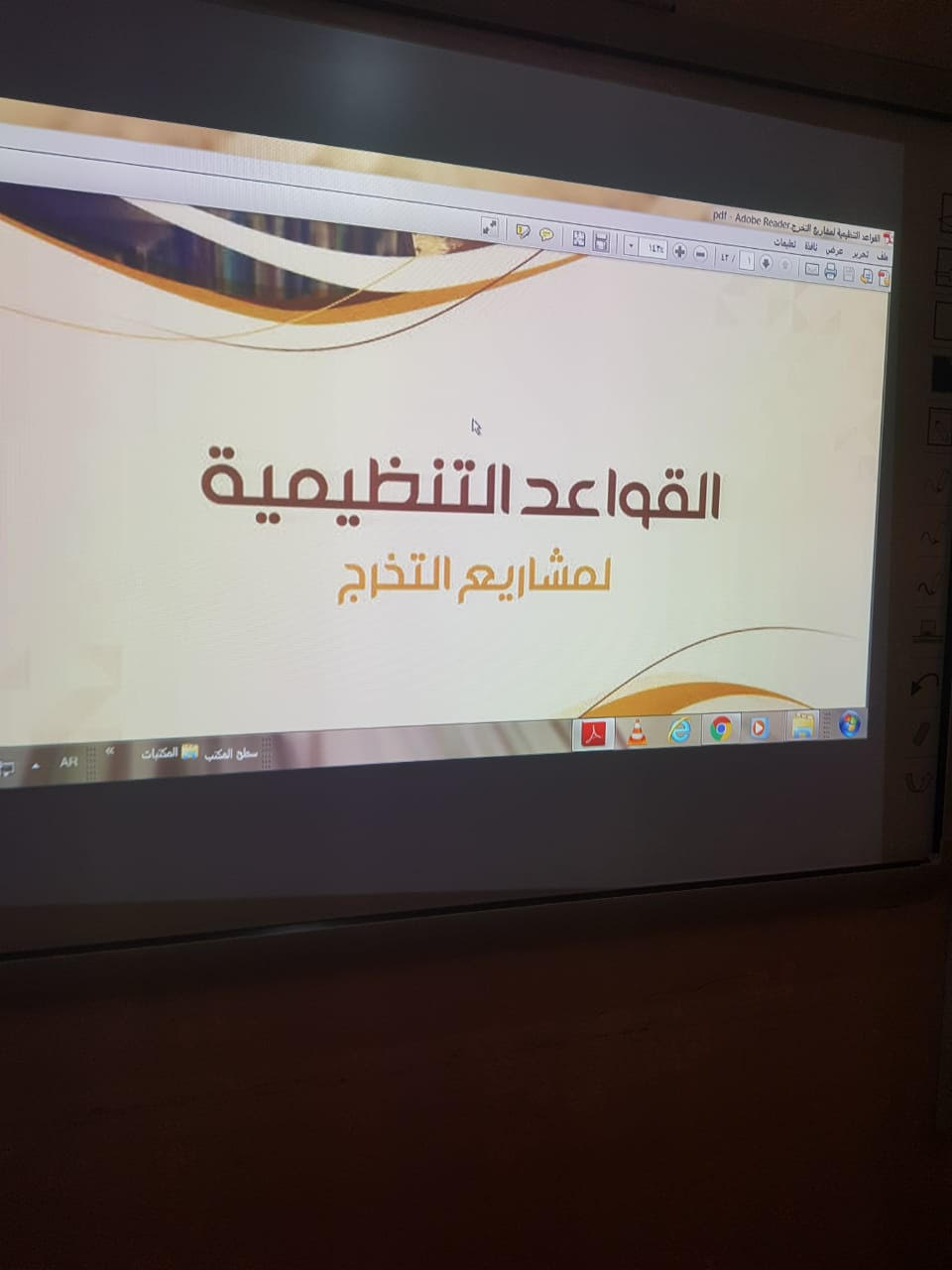 أقامت وحدة الخريجات بكلية المجتمع بالخرج متمثلة بلجنة مشاريع التخرج ورشة تعريفية بعنوان: " القواعد التنظيمية لمشاريع التخرج"، قدمتها الأستاذة/ سناء أحمد عزام.