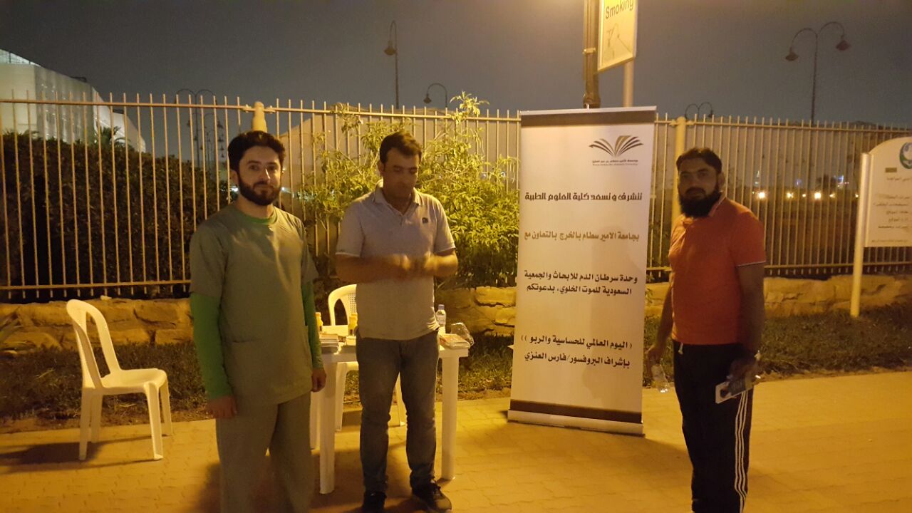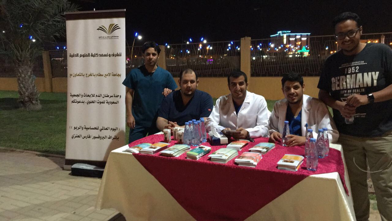 نظم قسم المختبرات الطبية بكلية العلوم الطبية التطبيقية بجامعة الأمير سطّام بن عبدالعزيز بالخرج بالتعاون مع شريكنا بالنجاح مستشفى دار الشفا بالرياض، الخميس ٣٠ رجب ١٤٣٨هـ، نشاطا مجتمعيًّا توعويًّا عن (الربو والحساسية) في ٣ مواقع بالخرج هي: مقر كلية العلوم الطبية بالخرج، ومقر كلية الطب بالخرج، وممشى البلدية بالخرج، و٣ مواقع أخرى بالرياض، هي: ممشى طريق الملك عبدالله، وممشى حي الصفوة بشرق الرياض، ومستشفى دار الشفا.