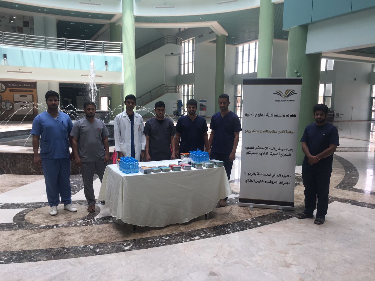 وقد تم دعم الفعالية من خلال وحدة سرطان الدم للأبحاث بإشراف البروفسور فارس العنزي، استشاري وأستاذ المناعة بالخرج، وقام بتنفيذ هذه الفعالية طلاب التجسير الدفعة الثانية بقسم المختبرات.