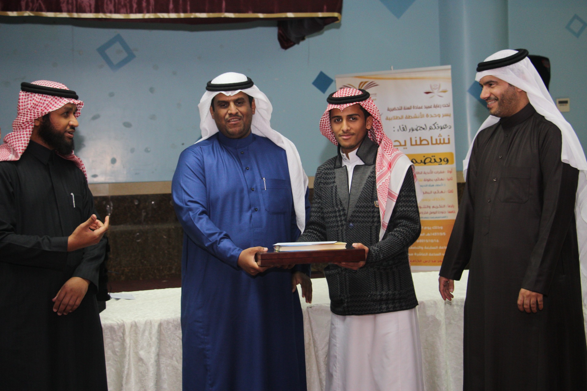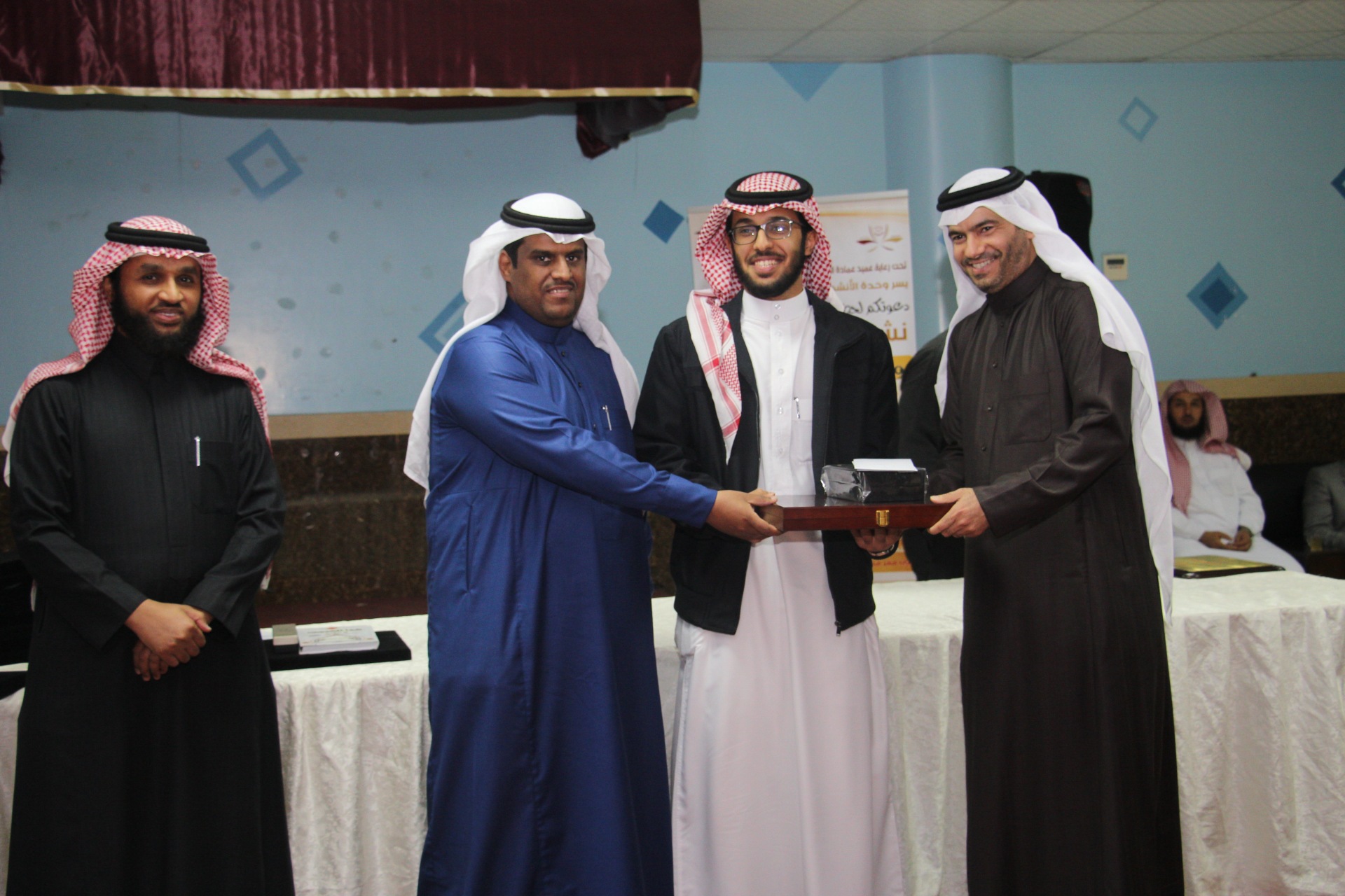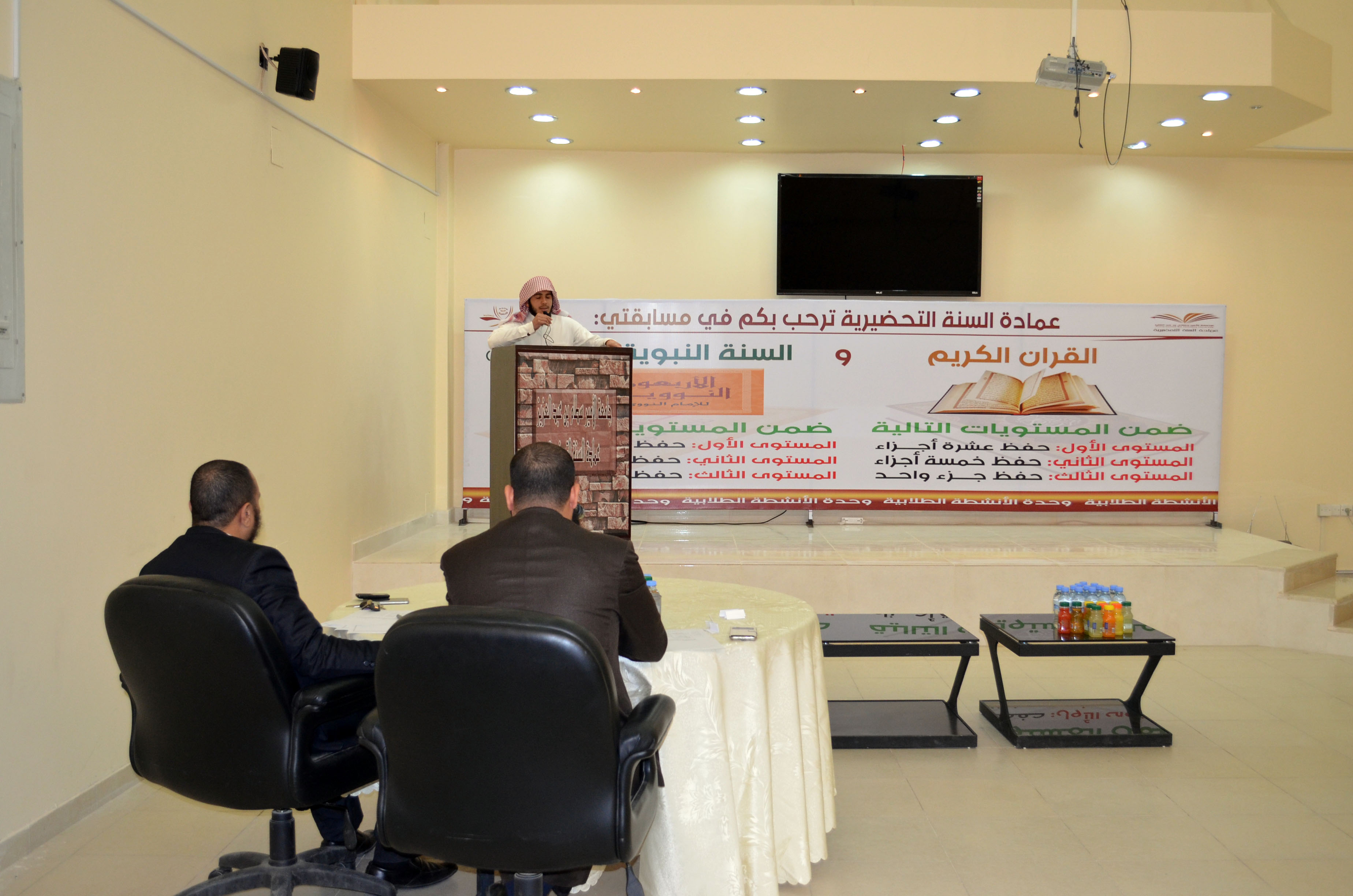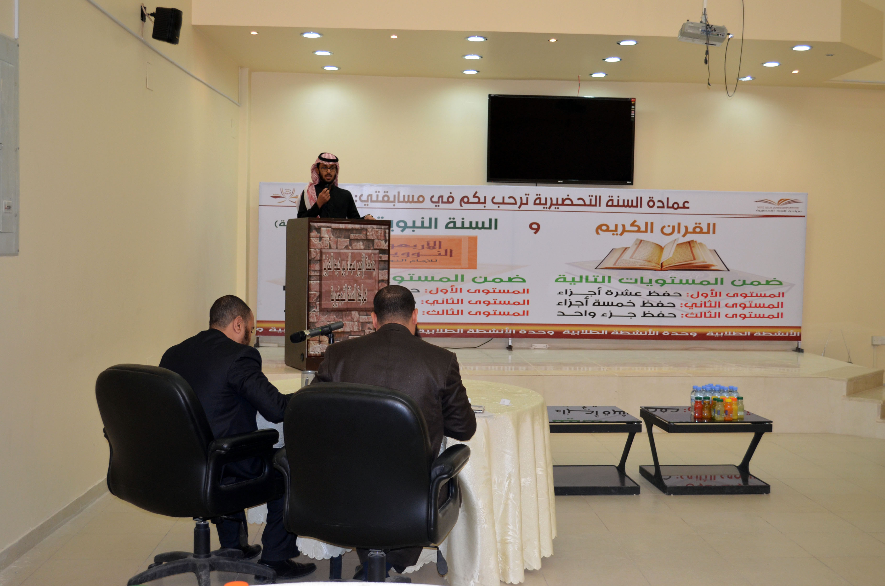 وشارك في لجنة التحكيم الأستاذ محمد عثمان والأستاذ أحمد عبدالسلام وبحضور عدد من طلاب ومنسوبي العمادة، حصل على المركز الأول في القرآن الكريم المستوى الأول الطالب فيصل حسن الصميلي، والمركز الثاني الطالب محمد زيد السبر، والمستوى الثاني حصل على المركز الأول الطالب علي فرحان العتيبي، وفي المستوى الثالث حصل على المركز الأول الطالب أحمد فهد المحسن، وعلى المركز الثاني نايف زيد الزير.