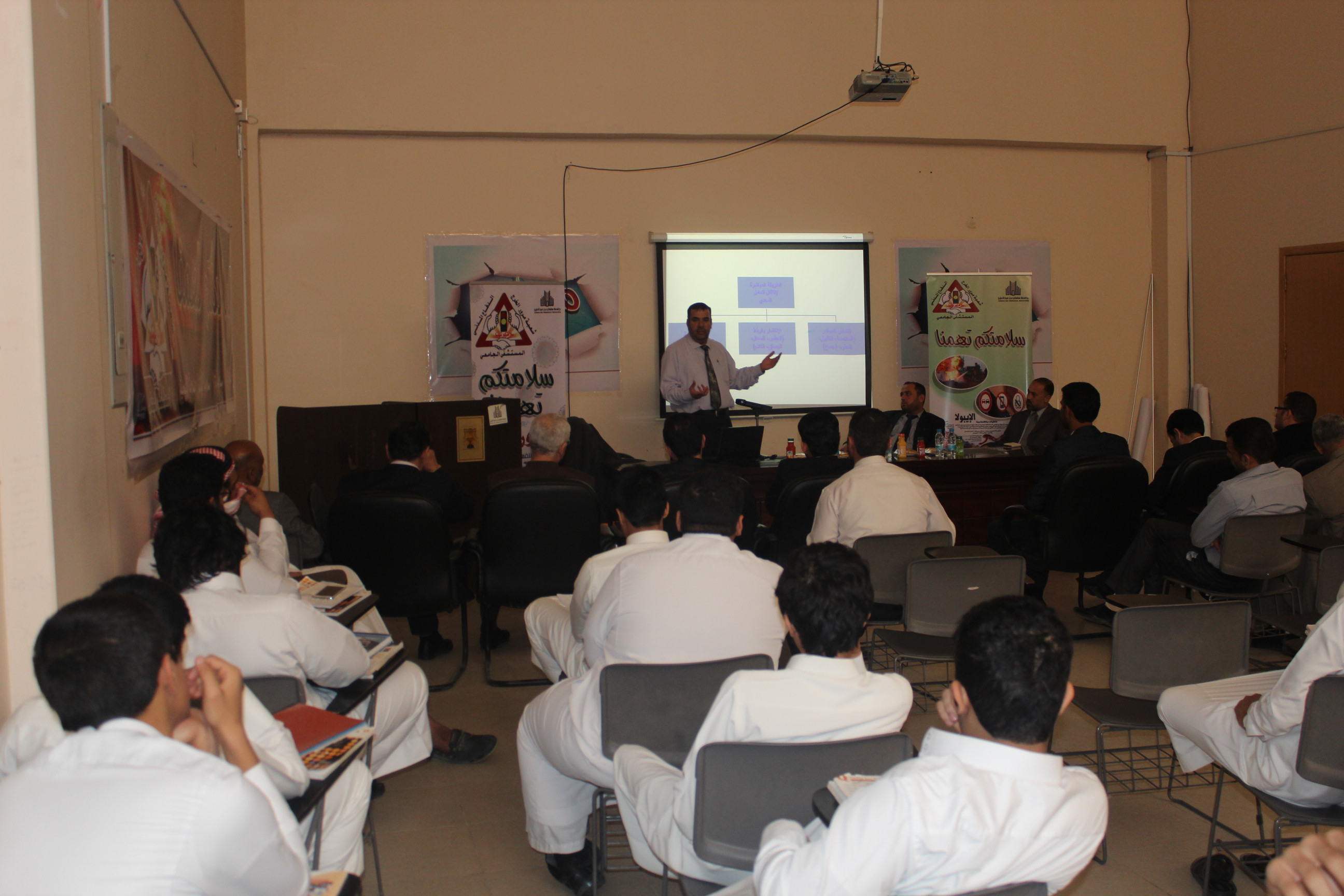 نظمت عمادة السنة التحضيرية برنامج الحملة التوعوية ( سلامتكم تهمنا ) والمدرجة ضمن الخطة الفصلية للأنشطة الطلابية بالعمادة، واستضافة الأستاذ المشارك والمستشار بالمستشفى الجامعي الدكتور ابراهيم عبدالعزيز.