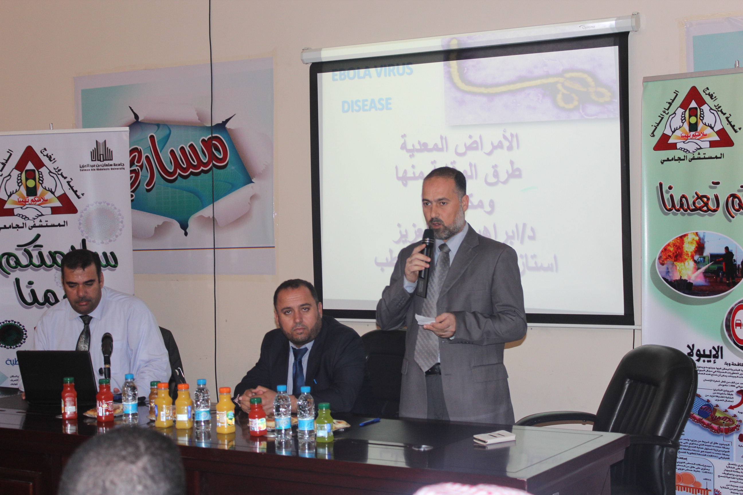 حيث بدأت المحاضرة بالحديث عن الامراض المزمنة ، والأمراض المعدية وطرق انتشار العدوى ، ثم أسهب في الحديث عن الأمراض المستحدثة كإيبولا وكورونا ، من حيث تعريفهما ، والطرق التي تؤدي للإصابة بهما ، والفئات الأكثر تعرضا للإصابة بهما ،وضرورة تبليع الرعاية الصحية في حالة الاشتباه بأعراض المصاب ، كما تحدّث عن سبل الوقاية منهما، وقدّم كذلك مجموعة من النصائح للمسافرين إلى مناطق ينتشر فيها مثل هذه الأمراض.