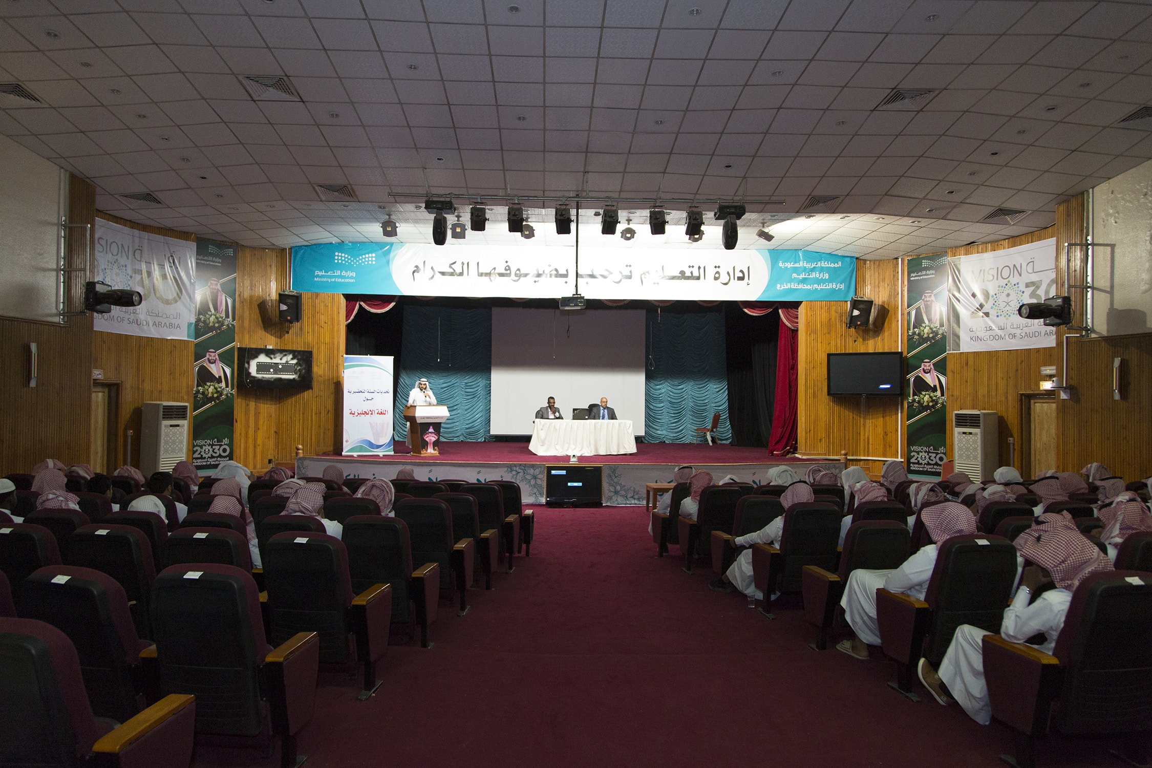 نظمت عمادة خدمة المجتمع و التعليم المستمر بجامعة الأمير سطام بن عبدالعزيز وبالتعاون مع عمادة السنة التحضيرية بالجامعة وإدارة التعليم بمحافظة الخرج ، محاضرة تعريفية حول : السنة التحضيرية وتحديات اللغة الإنجليزية وذلك على مسرح إدارة التعليم .