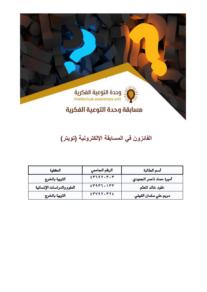 بحضور رئيس وحدة التوعية الفكرية الأستاذ الدكتور خالد بن إبراهيم الدبيان تم السحب على المسابقة الإلكترونية في التويتر للإسبوع الخامس وكان السؤال كالتالي اختر الإجابة الصحيحة : من هن النسوة اللاتي قال عنهن النبي صلى الله عليه وسلم خير نساء ركبن الإبل أحناه على طفل وأرعاه على زوج في ذات يده ؟ وكانت الإجابة هي نساء قريش وتم اختيار الفائزين بإجراء القرعة الإلكترونية بينهم ، وكان عدد الفئزين ثلاثة فائزين وقيمة الجائزة 300 ريال لكل فائز .