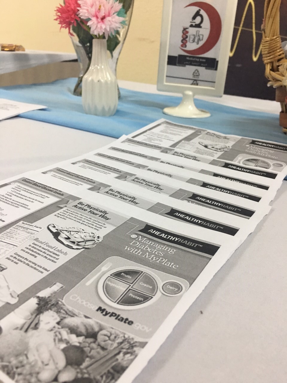 وتم توزيع نشرات ومطويات توضح طرق للوقاية من مرض السكر والأعراض المبكرة له وكيفية تفاديه وأهمية الرياضة للمصاب به . إلى جانب عرض فيديو توعوي عن مرض السكر .