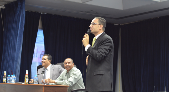 د. ياسر الريس أحمد الريس أستاذ المنهج وطرق التدريس قسم العلوم التربوية ، ود. حسام زكي أستاذ التربية الخاصة ،و د. محمد حسن الأبيض أستاذ مساعد - قسم التربية الخاصة منسق وحدة خدمة المجتمع بكلية التربية. كما قدم الطالب ناصر شعيفان نبذة مختصرة عن تجربته الخاصة في التحصيل الأكاديمي .