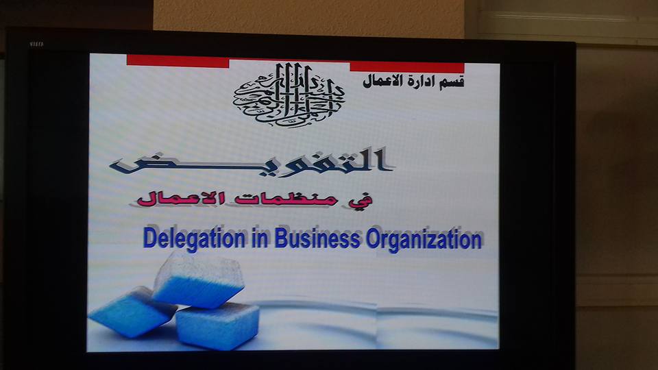 ضمن سلسلة اللقاءات العلمية التي تنظمها كلية العلوم والدراسات الإنسانية بالسليل ، تحت إشراف عميد الكلية الأستاذ الدكتور عبدالله بن مساعد الفالح ، حيث إنه تم عقد اللقاء العلمي الأول لقسم إدارة الأعمال ، وذلك يوم الثلاثاء الموافق4 / 2 / 1439هـ بمسرح الكلية ، بعنوان " التفويض في منظمات الأعمال "، للدكتور هجو البشير محمد علي الأستاذ المساعد بقسم إدارة الأعمال .