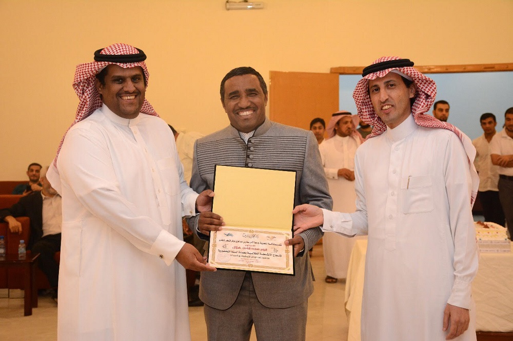 وتخلل اللقاء تهنئة سعادة العميد الدكتور العصيمي حيث تقدم سعادة وكيل العمادة بتقديم درع تذكاري لسعادة مقدم من منسوبيها بمناسبة ترقيته لرتبة أستاذ مشارك .وفي كلمة وجهها سعادة العميد رحب بها بالزملاء ، وشكرهم على جهودهم والتسهيلات التي قدموها لوحدة الأنشطة الطلابية ، مثمنا المراكز والإنجازات المختلفة التي حصلت الأنشطة الطلابية خلال هذا العام ، ومعتبرا الأنشطة الطلابية من الروافد الرئيسة التي تسهم في جعل البيئة الجامعية بيئة جاذبة للطالب،عقب ذلك توجه الحفل لتناول وجبة العشاء.