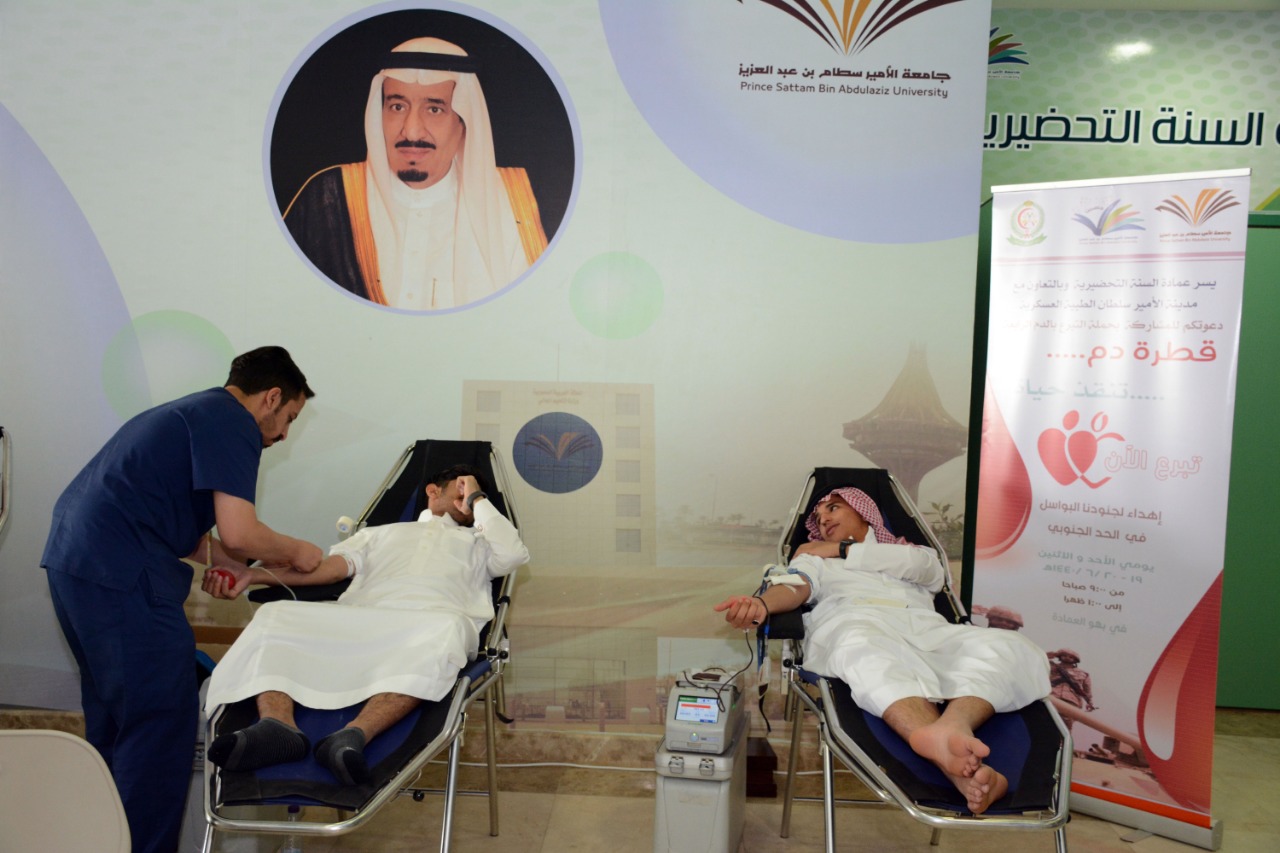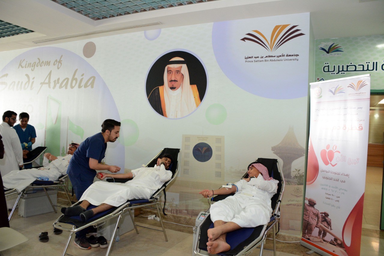 أقامت عمادة السنة التحضيرية بجامعة الأمير سطام بن عبد العزيز بالتعاون مع مستشفى القوات المسلحة ممثلا بمدينة الأمير سلطان الطبية العسكرية حملة "قطرة دم تنقذ حياة" للتبرع بالدم، اليوم الأحد الموافق 19/6/1440هـ في مبنى العمادة ؛ حيث دشن الحملة الدكتور مشاري بن عياد العصيمي عميد السنة التحضيرية بجامعة الأمير سطام بن عبدالعزيز، وسعادة اللواء الدكتور نامي بن فوزان الجعيد مدير مستشفيات القوات المسلحة بالخرج ،وكان ذلك بحضور سعادة وكيل العمادة للشؤون التعليمية والأكاديمية الدكتور فهد بن شهيل العلوي، وسعادة وكيل العمادة للشؤون الفنية والتطوير والجودة الدكتور محمد بن عبده محزري ، وسعادة العميد الدكتور عبد الله مباركي، و المشرف الفني على حملات التبرع بالدم في المستشفى: عبد المحسن ساعد الروقي ،والكادر المرافق من المستشفى .