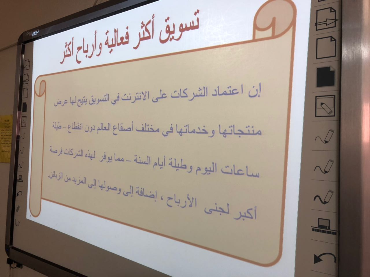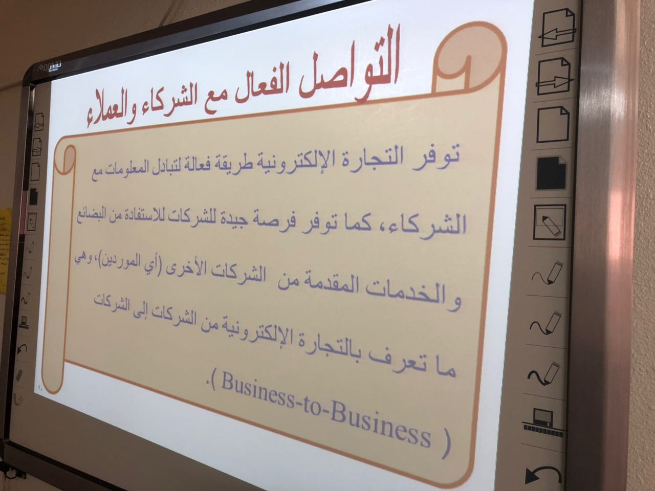 أقامت وحدة الخريجين بكلية العلوم والدراسات الإنسانية بالأفلاج "شطر الطالبات"متمثلة بلجنة التدريب والتأهيل يوم الثلاثاء 1439/6/25 هـ ورشة عمل بعنوان (التجارة الإلكترونية )في إحدى قاعات الكلية في تمام الساعة 11وكان محور الورشة التي قدمتها الدكتورة فاطمة كمال يدور حول التجارة الإلكترونية ومفهومها وأنواعها وفوائدها بالنسبة للمستهلك والشركات ,كذلك مستقبل هذه التجارة،كما تم تطبيق عملي على بعض المواقع الإلكترونية على الأنترنت لتطبيق ما تعلمته الطالبات والاستفادة من الورشة وكان الهدف من التجارة الإلكترونية إتاحة العديد من المزايا للمستهلكين ورجال الأعمال خاصة في عصرنا هذا الذي انتشر فيه الإنترنت انتشاراً هائلاً.