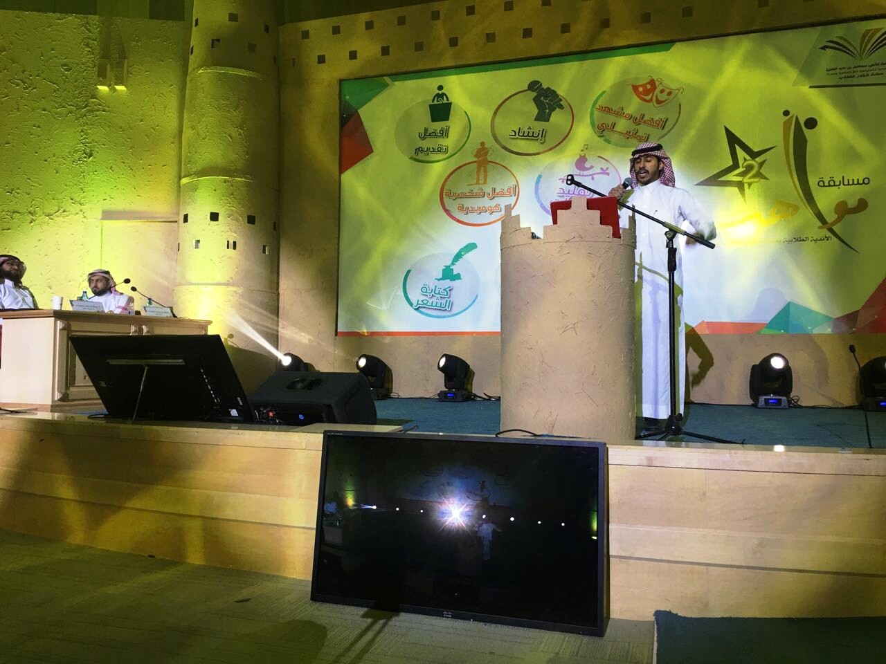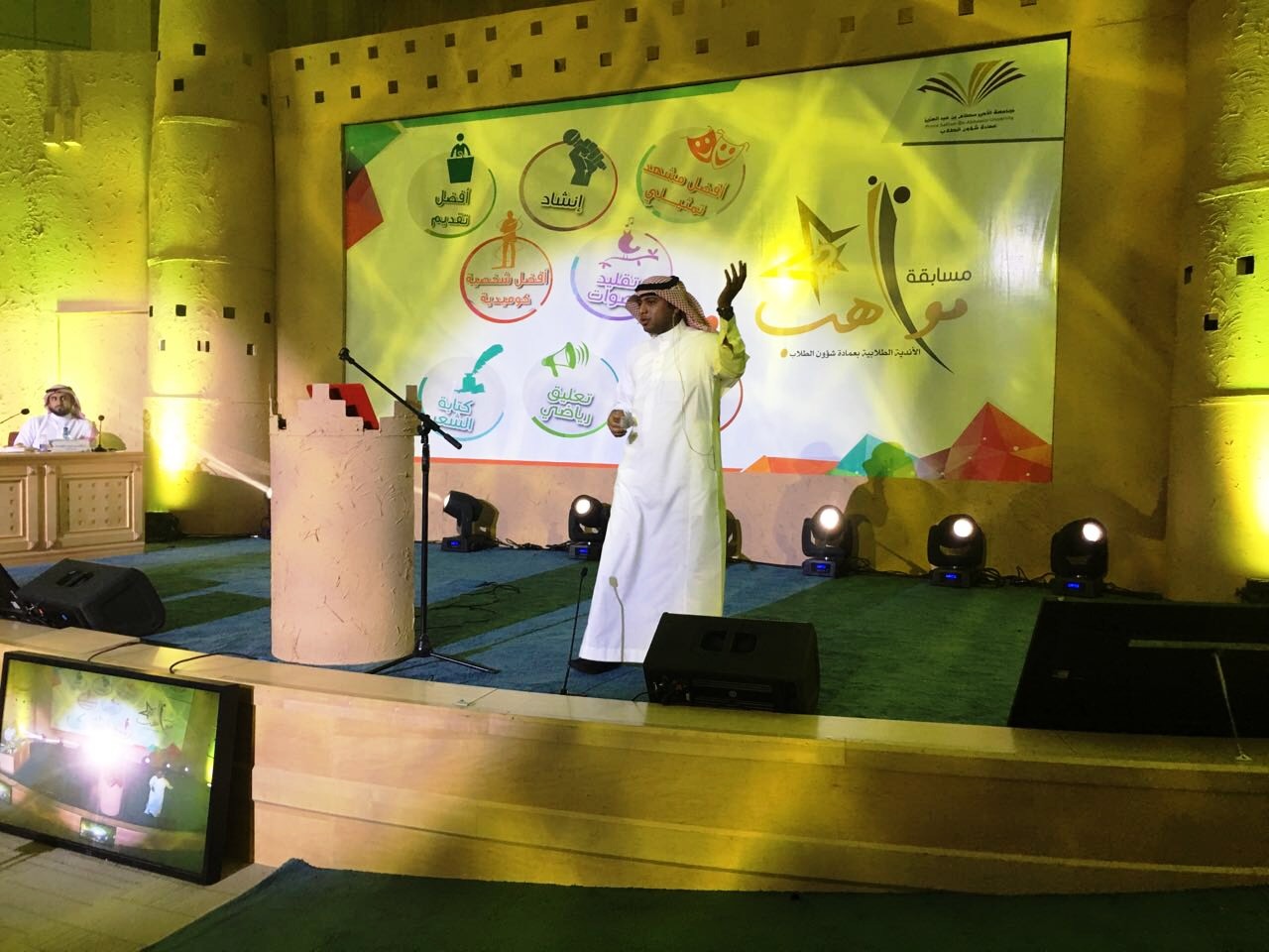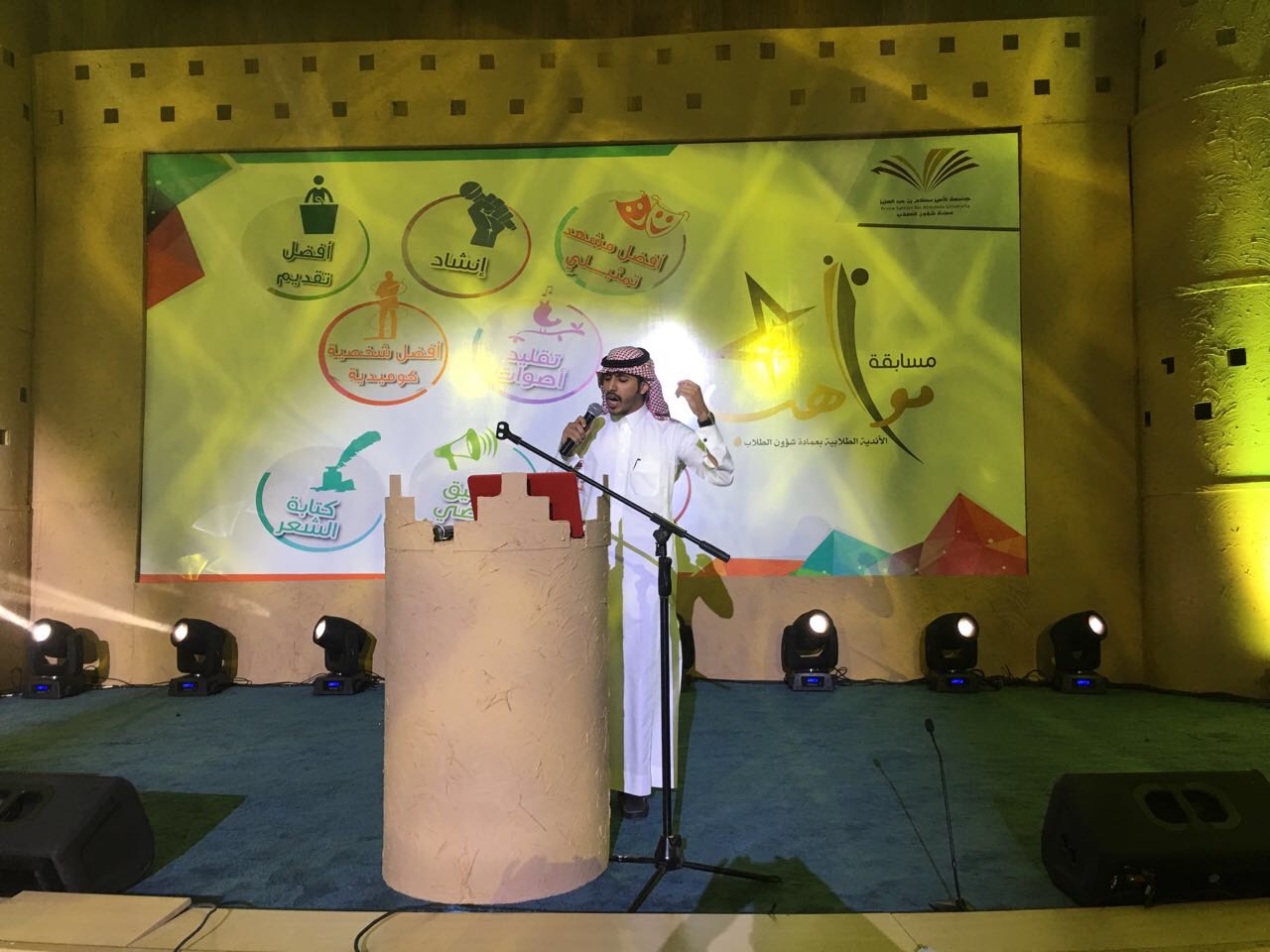 وبهذا بلغ عدد المواهب الطلابية التي عرضت أمام لجنة التحكيم فاق السبعين موهبة خلال اليومين التي أقيمت بها المسابقة من أثنا عشر كلية من مختلف كليات البنين بالجامعة.