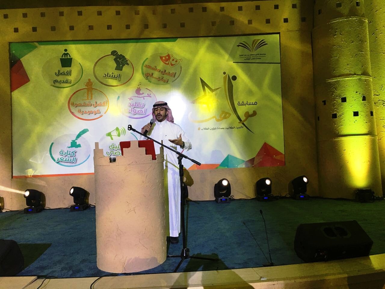 الجدير بالذكر أنه ستقيم عمادة شؤون الطلاب يوم غداً الأربعاء 2 /2 / 1438هـ الحفل الختامي لفعاليات المسابقة برعاية من وكيل الجامعة للشؤون التعليمية والأكاديمية الدكتور عبدالرحمن بن إبراهيم الخضيري في تمام الساعة الحادية عشر صباحاً بمسرح كلية الطب بالمدينة الجامعية في السيح , حيث سيتم خلال الحفل الإعلان عن المواهب الفائزة في كافة فروع المسابقة.