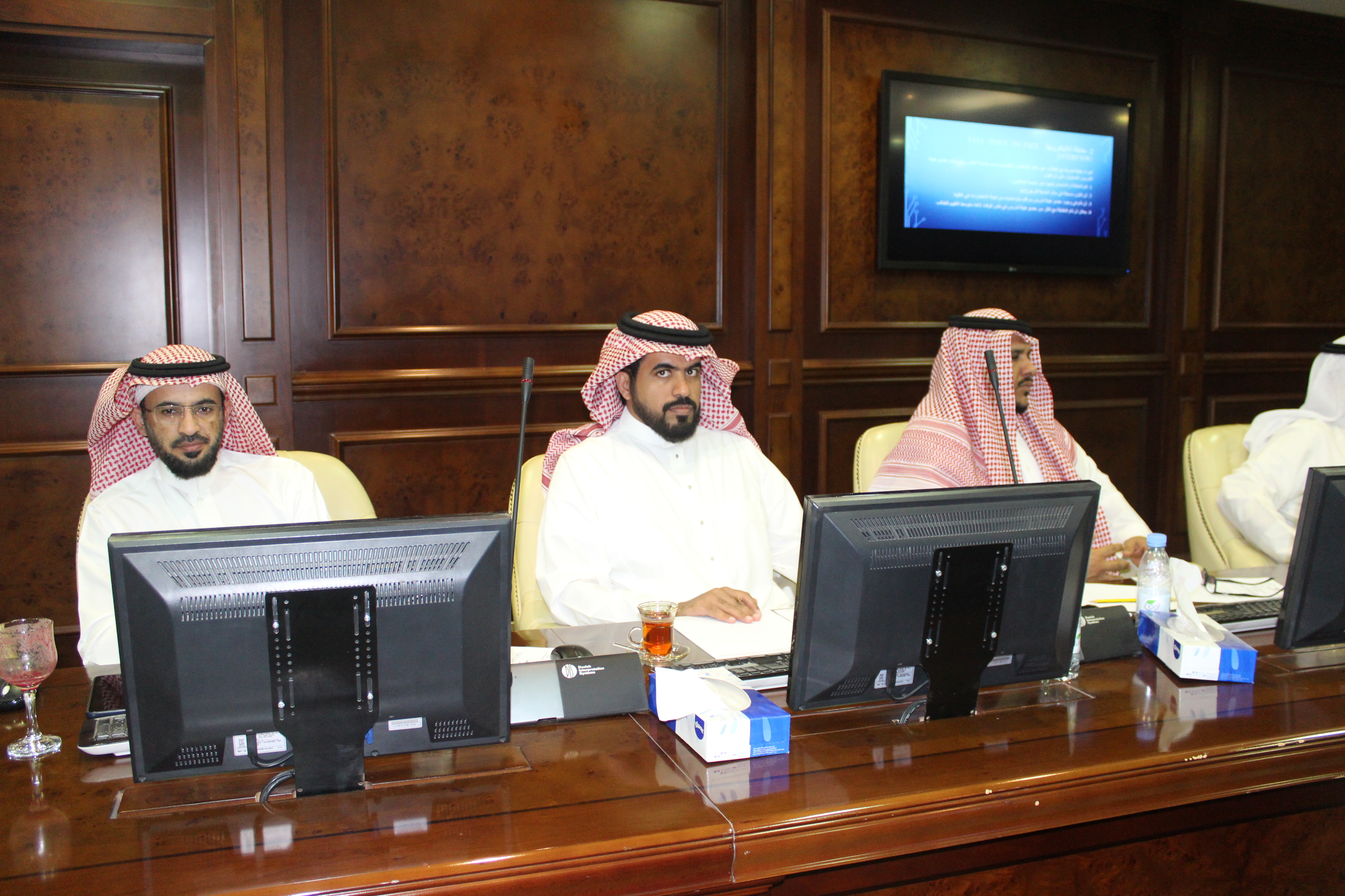 برئاسة سعادة وكيل الجامعة للشؤون التعليمية والأكاديمية الدكتور/ مشاري بن عياد العصيمي اجتمع صبالح يوم الخميس الموافق 17/7/1441هـ عمداء الكليات لمناقشة سير العملية التعليمية وتطبيق التعليم الإلكتروني بالجامعة وآلية تسجيل حضور وغياب الطلاب عن الجلسات التعليمية، ومناقشة آلية الاختبارات في حال استمرار تعليق الدراسة ، وقد استعرض العصيمي إحصاءات التعليم الإلكتروني بالكليات خلال الفترة الماضية والتي جاءت بصورة مُشَرِّفة للجامعة ـــ ولله الحمد ـــ حيث بلغ عدد الفصول الافتراضية التي تم إنشاؤها في يوم الأربعاء 16/7/1441هـ (2510) فصلاً ، وعدد الحضور الفعلي (20856) ، كما أكد على حث الطلاب للمواظبة على حضور المحاضرات الإلكترونية بكل الوسائل الإعلامية المتاحة، وأن يتم اشعار الطلاب أن محاضرات التعليم الإلكتروني سيشملها الاختبار النهائي، وفي نهاية الاجتماع أوصى الحضور في حال رأت اللجان العليا بوزارة التعليم عدم إمكانية حضور الطلاب إلى مقر الكلية لإجراء الاختبارات أن يتم تطبيق الأنماط المقترحة الآتية أدناه لإجراء الاختبارات النهائية بشكل إلكتروني ، ولكل كلية أن تختار من بين هذه الأنماط الأربعة للتقييم بما يتوافق مع طبيعة كل قسم والذي يمكن أن يحقق قياس الحد الأدنى من المخرجات التعليمية وفق توصيف المقرر، وهي :