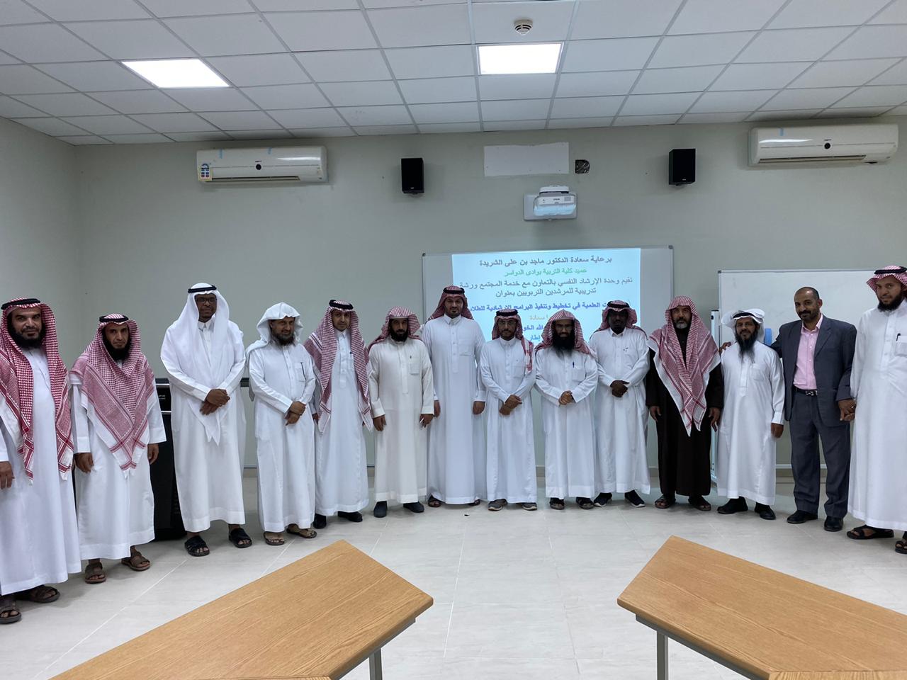 بتوجيه ومتابعة الدكتور / ماجد بن على الشريدة عميد كلية التربية بوادي الدواسر واصلت وحدة خدمة المجتمع فاعلياتها ضمن برنامج (التطوير المهني لمعلمي محافظة وادي الدواسر)، حيث تأتي هذه المبادرة امتدادًا للتعاون المستمر والتواصل الفعَّال بين الكلية وإدارة التعليم بالمحافظة؛ لدعم وتطوير العملية التعليمية. ومن خلال التعاون مع وحدة الإرشاد النفسي بالكلية قدمت وحدة خدمة المجتمع دورة تدريبية للمرشدين التربويين من أبناء المحافظة بعنوان ( الخطوات العلمية في تخطيط وتنفيذ البرامج الإرشادية للطلاب)، وذلك يوم الاثنين الموافق 7 رجب 1441هـ بقاعة التدريب بالكلية .