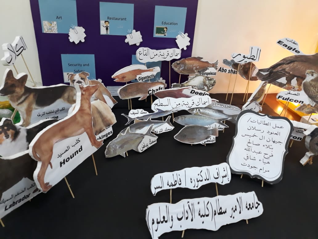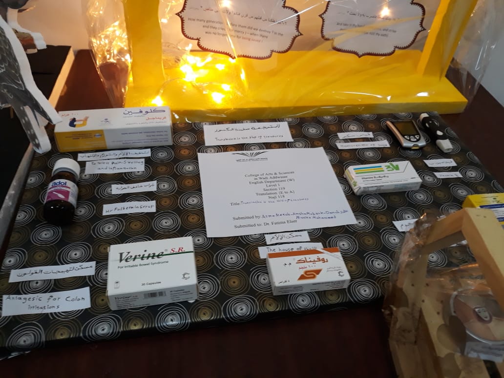ومن ثم تم افتتاح المعرض الذي احتوى على أعمال من ترجمة طالبات القسم، وبعض من مشاريع التخرج لخريجات في مجال الترجمة، واحتوى المعرض على أفلام الدبلجة القصيرة التي ترجمت وأخرجت بواسطة مجموعة من الطالبات.