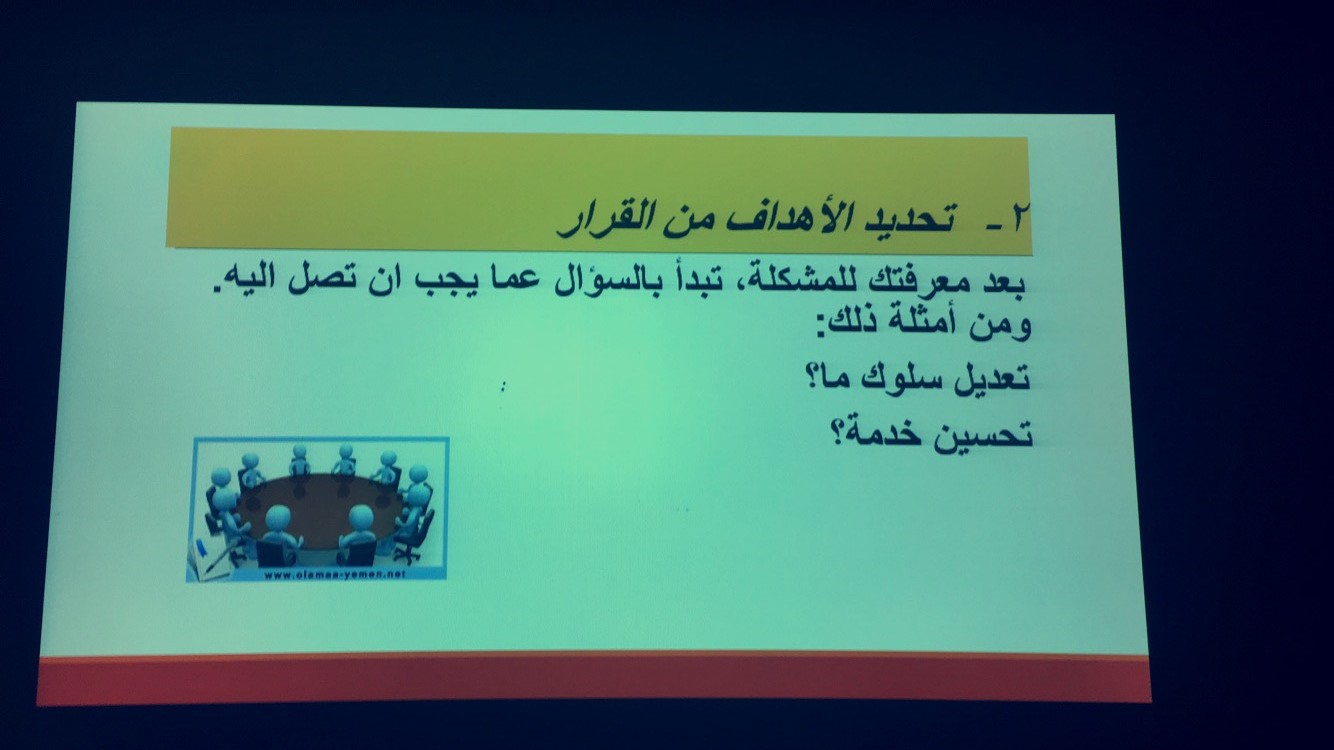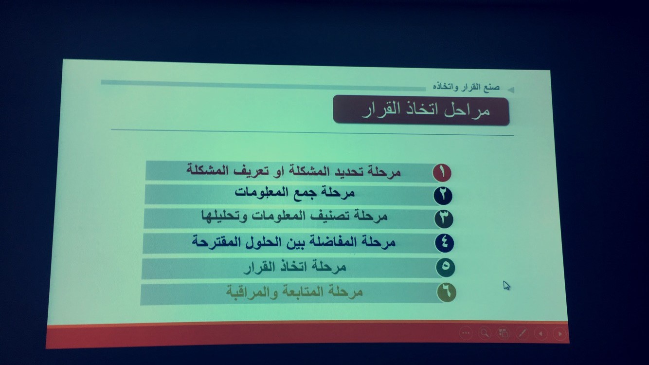 قدمت د. نورة المشعل الأستاذ المساعد بقسم العلوم التربوية بكلية التربية بالخرج تحت إشراف وحدة العمل الطلابي دورة بعنوان (الطرق الابداعية) وذلك يوم الأحد الموافق 27 -1-1440هـ،اشتملت الدورة على العديد من الأهداف مثل التعرف على مفهوم وأهمية اتخاذ القرار ,تحديد أنواع القرارات ,شرح مراحل اتخاذ القرار وتحديد العوامل المؤثرة فيه,عوامل نجاح القرار ,معوقات اتخاذ القرار وتوضيح أسباب اتخاذ القرارات الخاطئة,واستهدفت الدورة طالبات الكلية بمختلف المستويات .