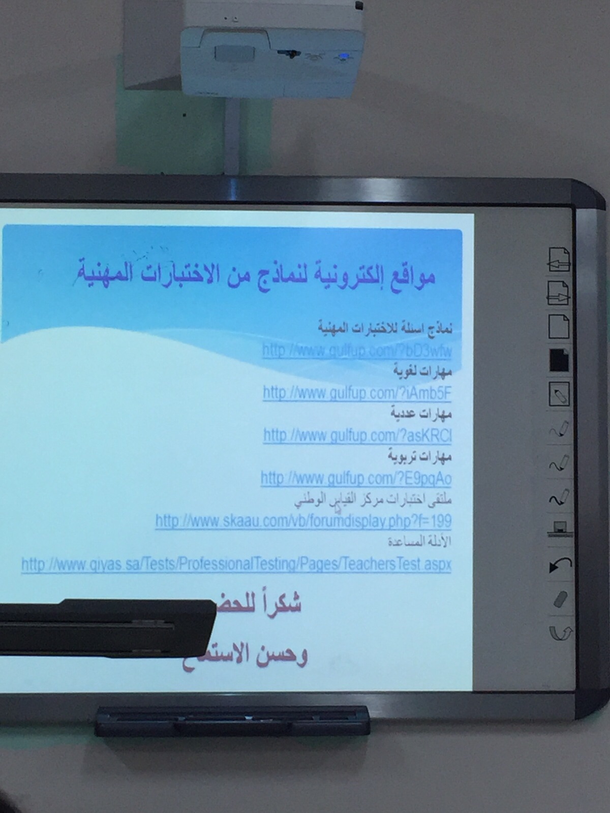 ودعا الخريجات للاستفادة من الخدمات التي يقدمها موقع مركز قياس والفائدة العظيمة التي تعود على الخريجة؛ بحيث تمكنها الخدمات من خوض الاختبارات بكل يسر وسهولة، بعد ذلك تم عرض نماذج من الاختبارات لجميع التخصصات التعليمية بالإضافة إلى نماذج للاختبارات العامة التي تشمل جميع التخصصات، و الاستراتيجيات الحديثة المستخدمة في المركز الوطني للقياس والتقويم في كافة هذه التخصصات