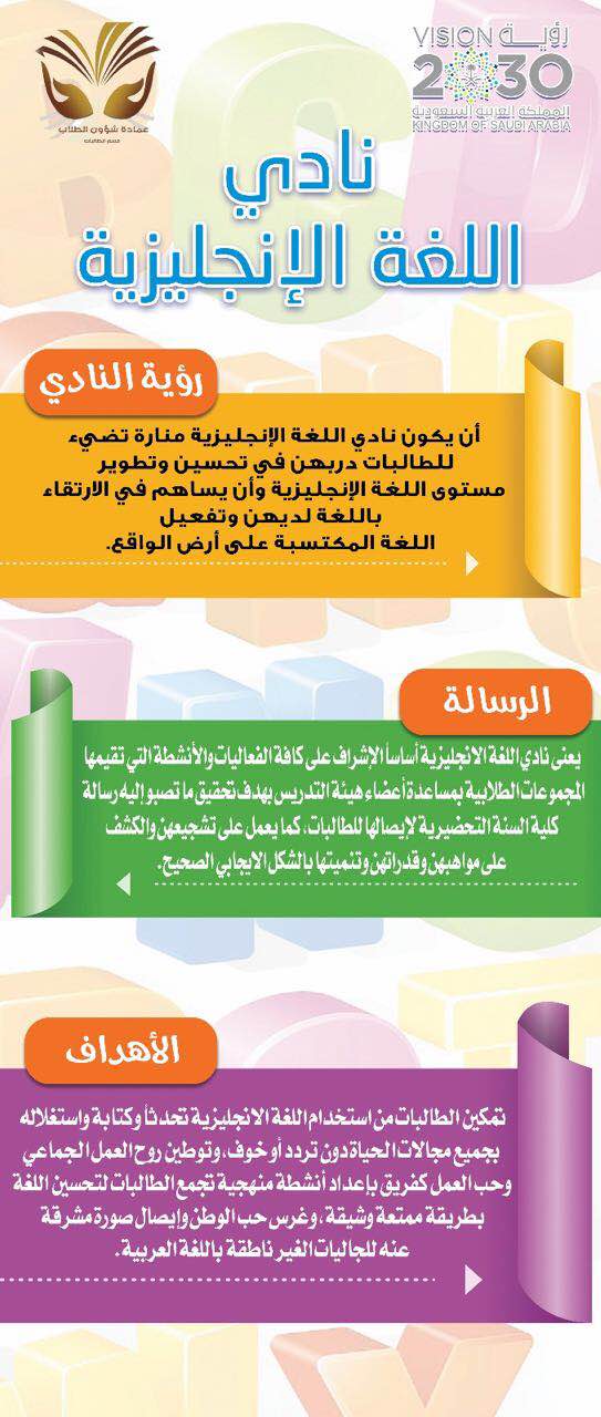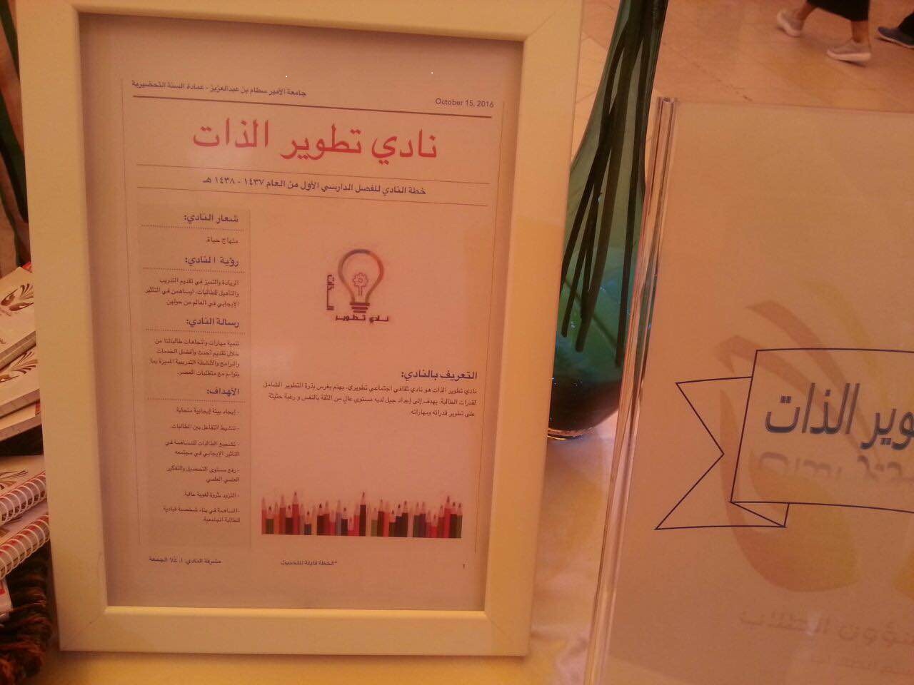 قامت عمادة السنة التحضيرية " شطر الطالبات "بإفتتاح الركن التعريفي بالأندية الطلابية وتسجيل العضوية بجانب ركن " أيام اكتوبر ...التي لا تنسى". بحضور وكيلة عمادة السنة التحضيرية الدكتورة أمل الشمراني، وحضور مساعدة الوكيلة الدكتورة حنان البحري. من إعداد وإشراف وحدة العمل الطلابي .حيث تم عرض رؤية ورسالة وهدف كل نادي...وقامت مشرفات الأندية بتشجيع وتحفيز الطالبات على التسجيل ،حيث كان هناك إقبال من الطالبات..