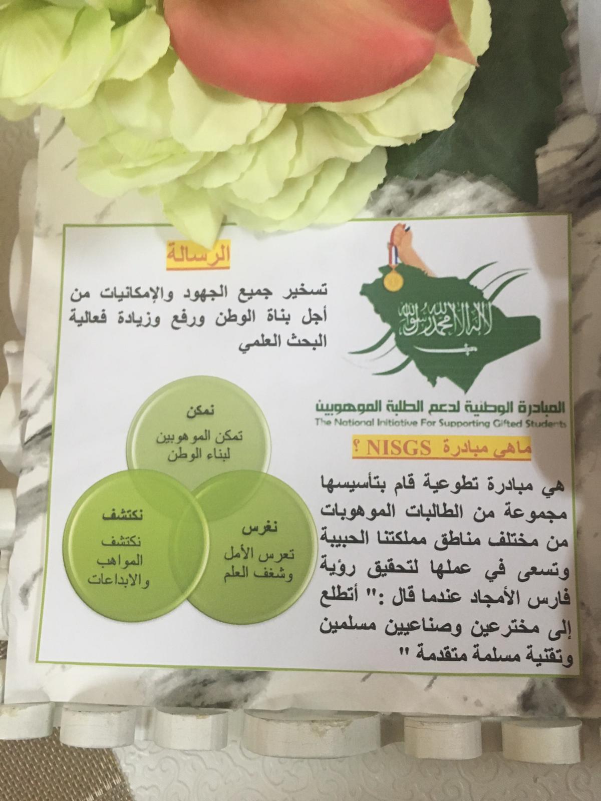 أعدت الدولة وحكومتنا الرشيدة حفظها الله العديد من البرامج والمبادرات من أجل رعاية الطلبة المتفوقين والموهوبين وتوفير البيئة التعليمية المناسبة لتنمية قدرات الفرد ومواهبه. سعياً لتفعيل هذه المبادرات و في سبيل الخدمة المجتمعية، أقامت عضوات "المبادرة الوطنية لدعم الطلبة الموهوبين" بإشراف وحدة الخدمة الاجتماعية بكلية العلوم والدراسات الإنسانية بحوطة بني تميم "قسم اللغة الإنجليزية" ووحدة الموهوبات البرنامج التعريفي الأول للمبادرة الوطنية لدعم الطلبة الموهوبين. كان ذلك يوم الاثنين الموافق ٢٧/ ٢/ ١٤٤٠ هـ حيث هدف البرنامج التعريف بماهية المبادرة ورؤيتها ورسالتها وأهدافها وخدماتها المقدمة للطلبة الموهوبين.