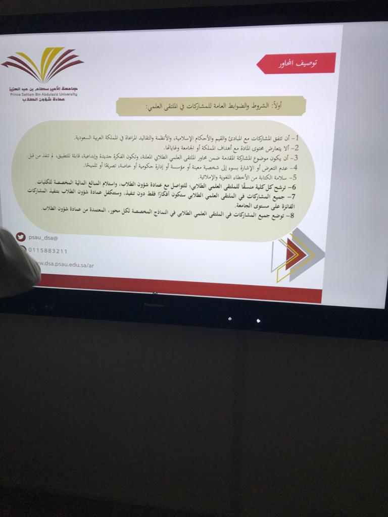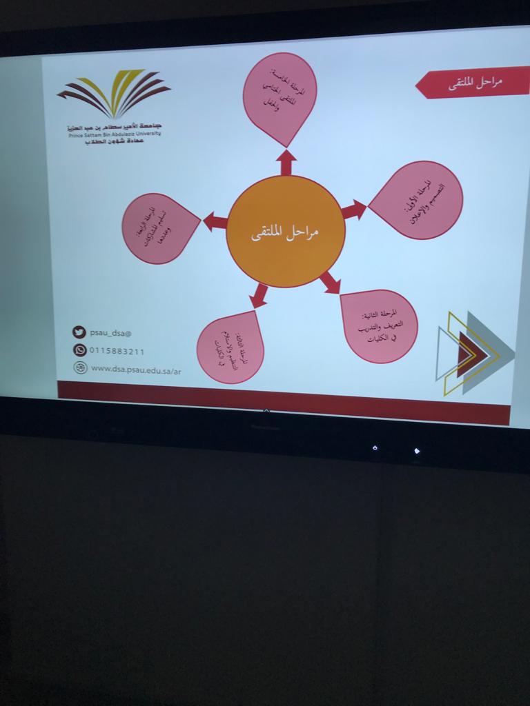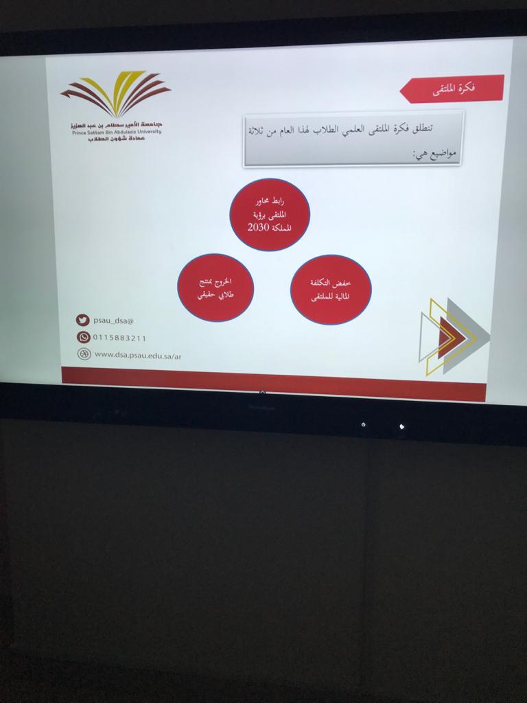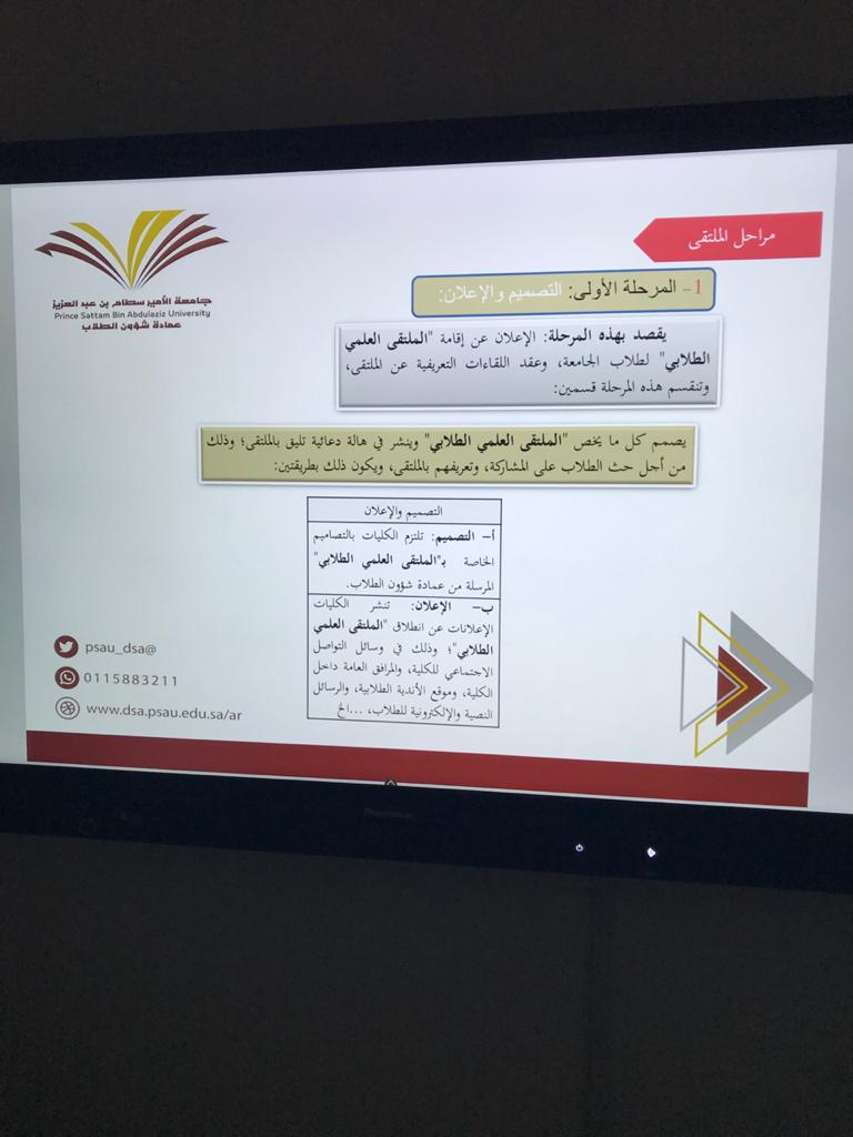 فى إطار الدعاية للملتقى العلمي الطلابي بكلية العلوم الطبية التطبيقية بوادي الدواسر لهذا العام اقيمت يوم الاثنين ١٤٤١/٦/٣٠ ثلاث فاعليات للتعريف بالملتقى ومحاوره المتعددة. الفاعلية الأولى تضمنت اللقاء التعريفي الثاني وقدمتها منسقة الملتقى د.سمية عايش وتضمنت التعريف بفكرة الملتقى ومحاوره والمراحل وضوابط كل مرحلة وكيفية إعداد الأعمال والجوائز وجدول أعمال الملتقى من البداية وحتى التحكيم والنتائج وتحفيز الطالبات على المشاركة بأكثر من مشاركة.