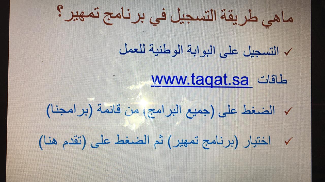 اقامت وحدة الخريجات بكلية العلوم الطبية التطبيقية بوادي الدواسر متمثلة في التأهيل الوظيفي ندوة للطالبات بعنوان "التعريف ببرنامج تمهير" وذلك يوم الثلاثاء الموافق ١٤٤١/٣/٢٩ الساعة العاشرة صباحًا للطالبات المتوقع تخرجهن.