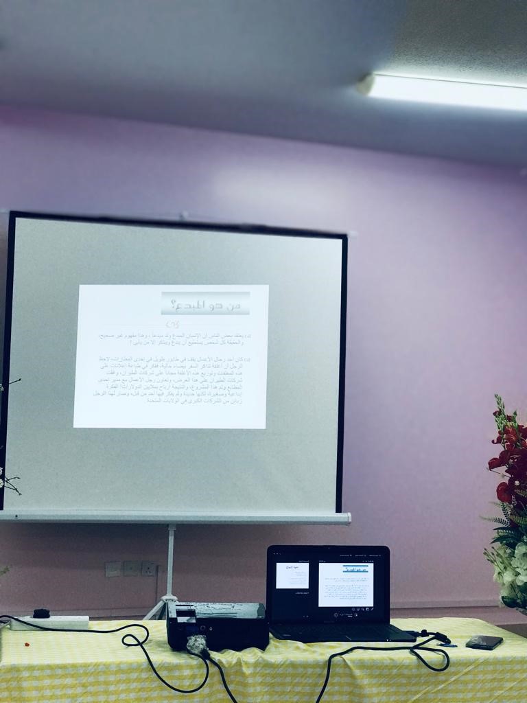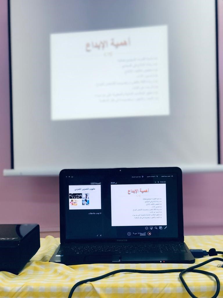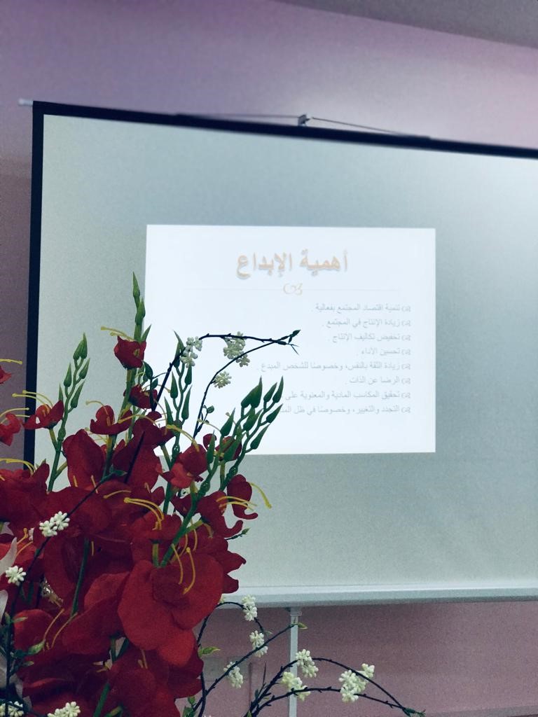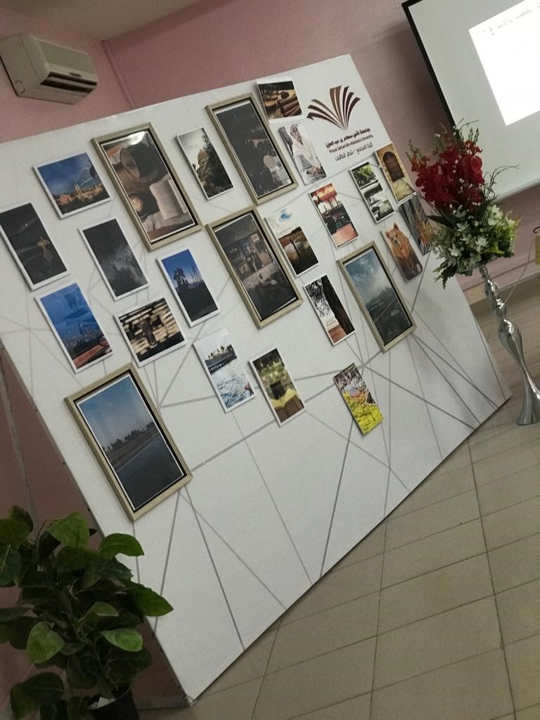 وذلك لعرض مواهب الطالبات وتحفيزهم وكان ذلك من خلال مشاركه عدد كبير من الطالبات بلوحات فنية من رسوماتهن ولوحات مصوره ورافق المعرض عرض بوربوينت لتوضيح ما هو الإبداع وكيف تكوني مبدعة في مجال التصوير ولاقى المعرض مشاركة وحضور كبير من طالبات ومنسوبات الكلية.