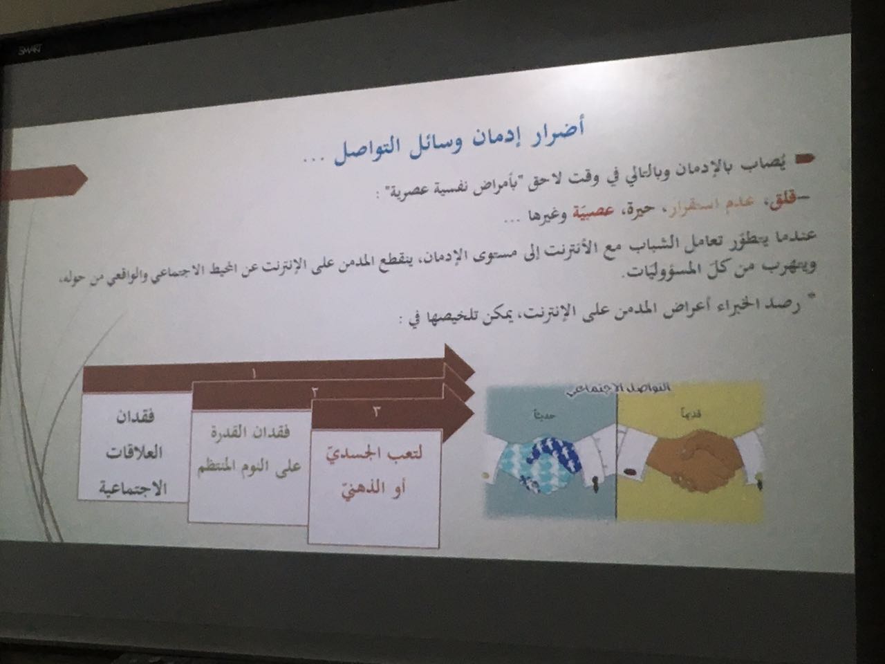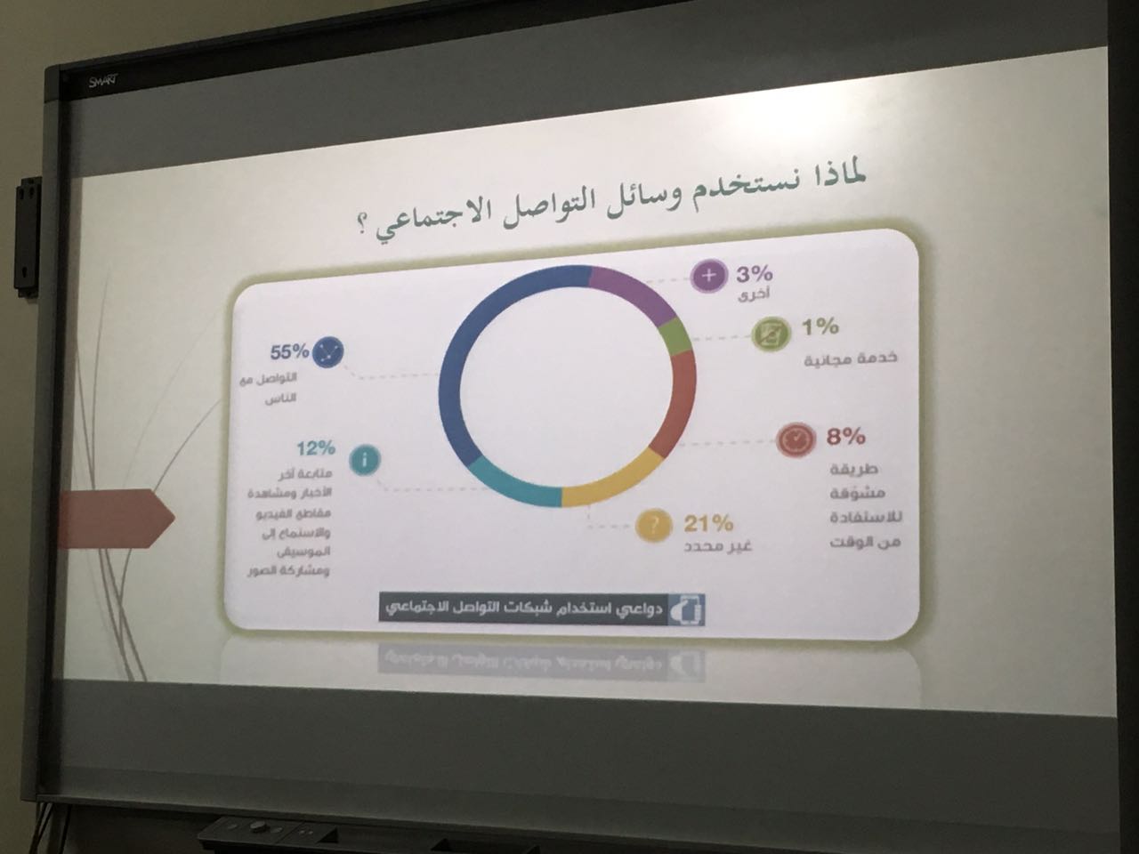 وبالتالي كان تفاعل الطالبات مع البرنامج مميز ومتعاون وحيوي حيث تم تبادل المعلومات ومناقشة أهم قضايا مواقع التواصل ومدى أثرها وإدمانهن على المواقع .