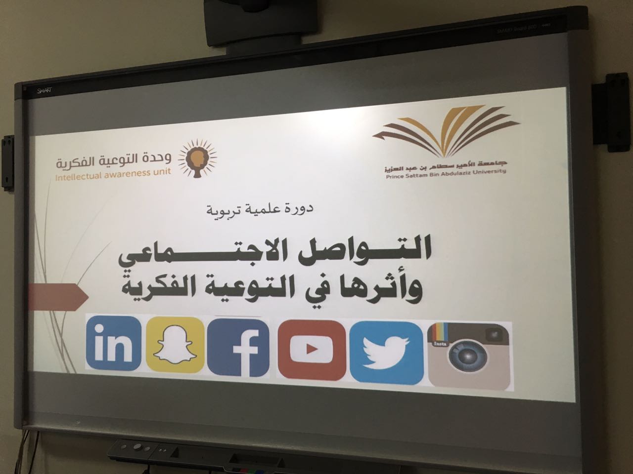 تحت رعاية سعادة وكيلة عمادة السنة التحضيرية الدكتورة / أمل بنت صالح الشمراني وبالتعاون مع وحدة التوعية الفكرية وضمن مشروع ( جامعة واعية – 2 - ) فقط تم إقامة دورة تدريبية بعنوان التواصل الاجتماعي وأثره في التوعية الفكرية والتي ألقتها سعادة الدكتورة / نورة بنت عبدالعزيز العلي وذلك في يوم الخميس الموافق 19/07/1439هـ في قاعة التدريب والتخطيط – مبنى ج .