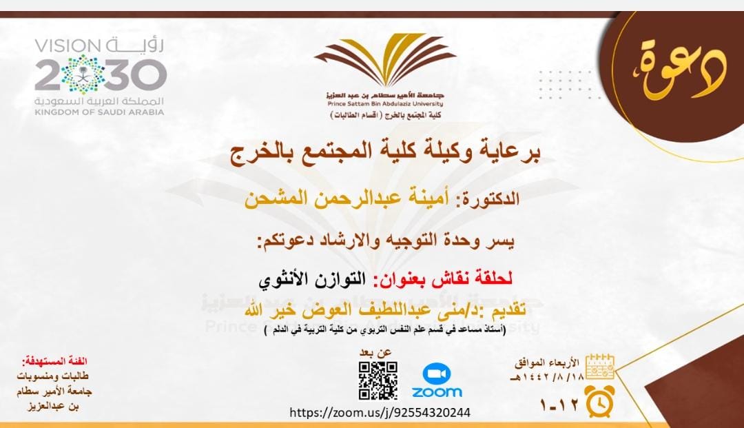 وذلك يوم الأربعاء الموافق ١٨/ ٨/ ١٤٤٢هـ - عبر برنامج الزوم -