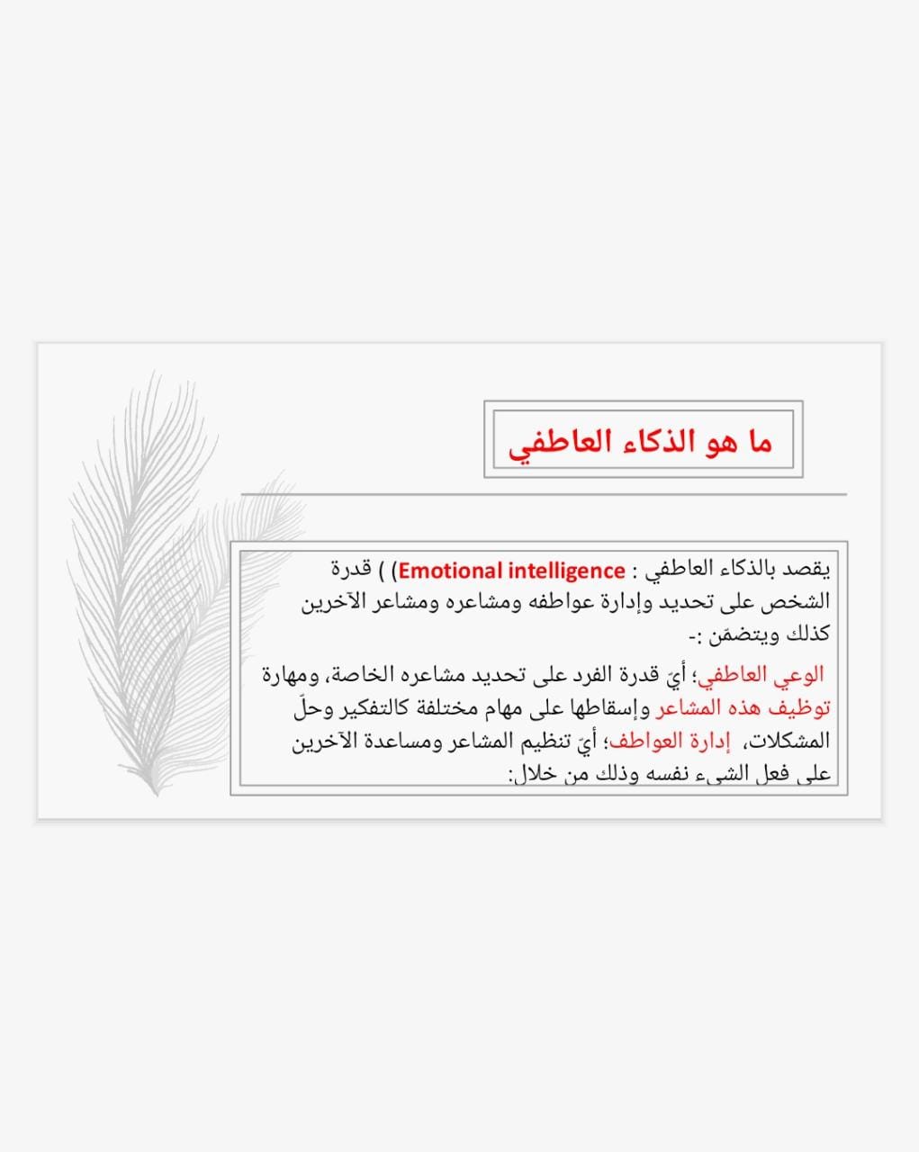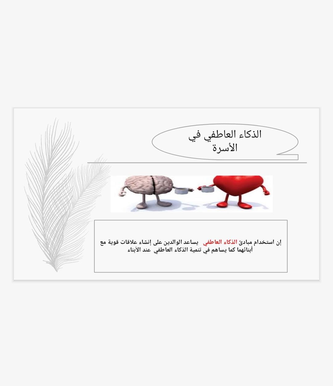 كما تحدثت عن أهمية الذكاء العاطفي على المستوى الشخصي والمهني والأسري؛ حيث ذكرت في الذكاء الأسري أنه كلما استخدمت الأسرة مبدئ الذكاء العاطفي ينشئون الأبناء نشئه سوية ومستقرة نفسياً.